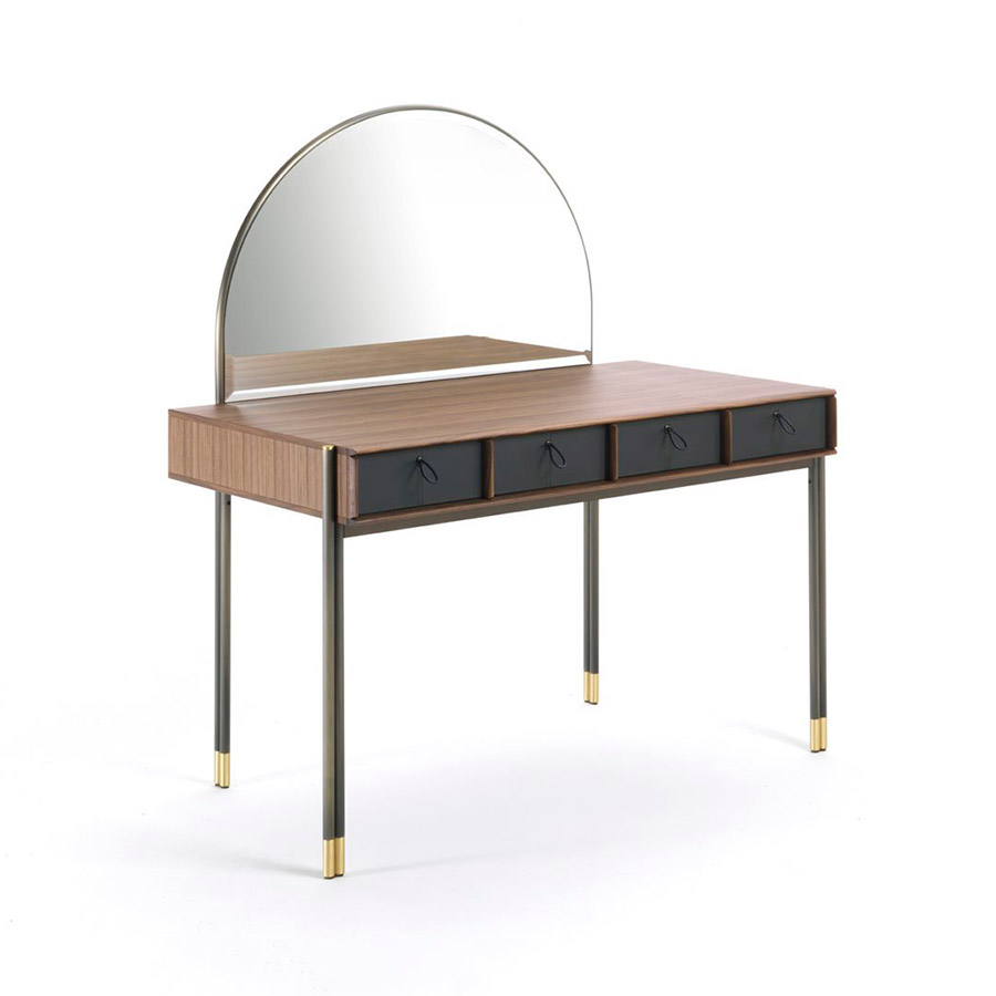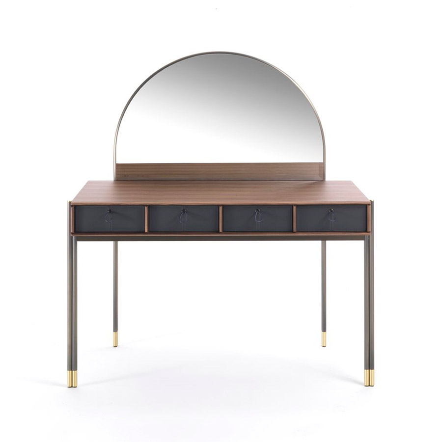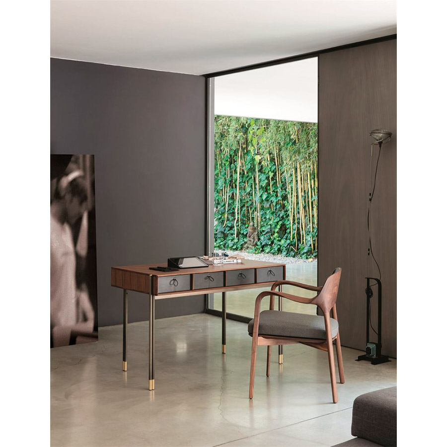 Gabriele Buratti Oscar BurattiEscritorio de nogal canaletta con cuatro huecos (es posible poner máximo cuatro cajones ELEY). Bordes de la tapa y divisorios en nogal canaletta macizo. Base en metal bronzoro con puntales en latón cepillado.