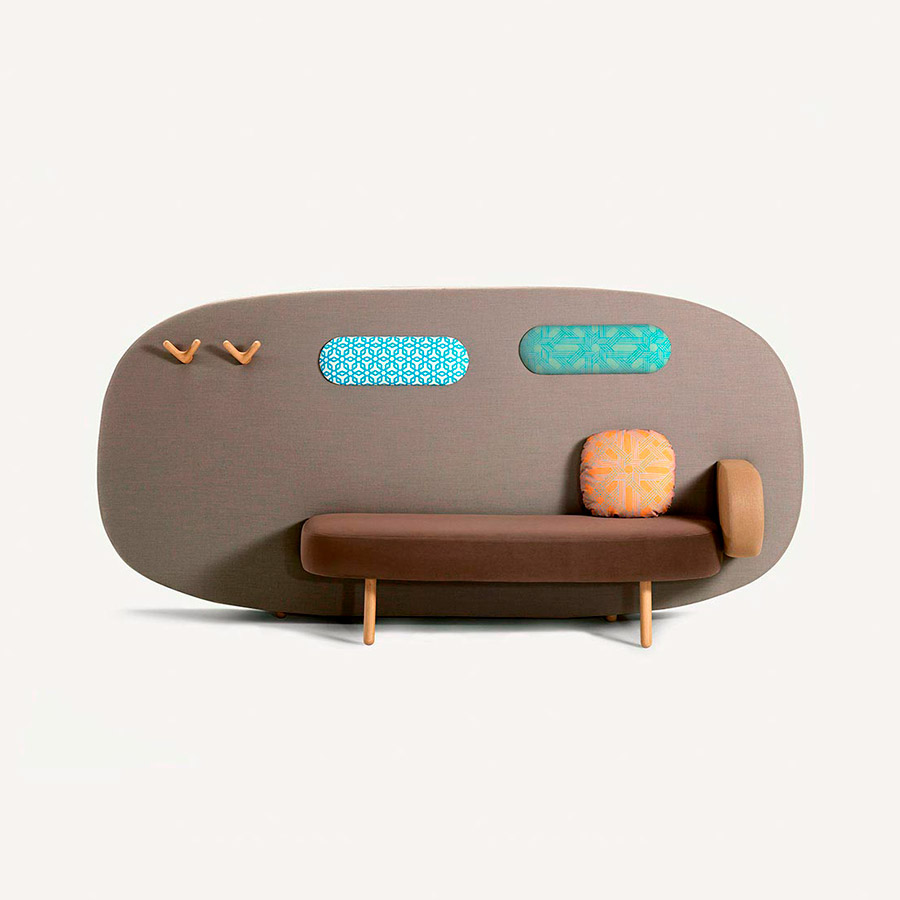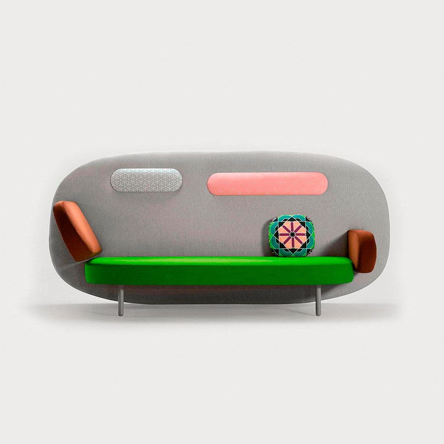 De la mano de Karim Rashid hemos conseguido crear un asiento que respeta nuestro universo propio cuando habitamos espacios públicos. Un sofá que hace las veces de biombo. Float es un diván contemporáneo pensado para múltiples usos. Este delgado asiento flotante, con pared incorporada, nos concede total privacidad en entornos abiertos para recostarnos, colgar la bufanda y el abrigo, o simplemente esperar en el reservado que dispone su enorme respaldo. Float está disponible en tres tamaños: dos sofás con respaldo bajo y un sofá con respaldo alto. Este último tiene distintas configuraciones; además de los brazos rectos, podemos seleccionar un brazo inclinado que sirve para recostarnos sobre él a modo de diván. Asimismo, el respaldo alto, como si de una pared se tratara, permite incorporar dos colgadores. Para cojines y reposacabezas Karim también ha diseñado una serie de estampados denominados Cairo.