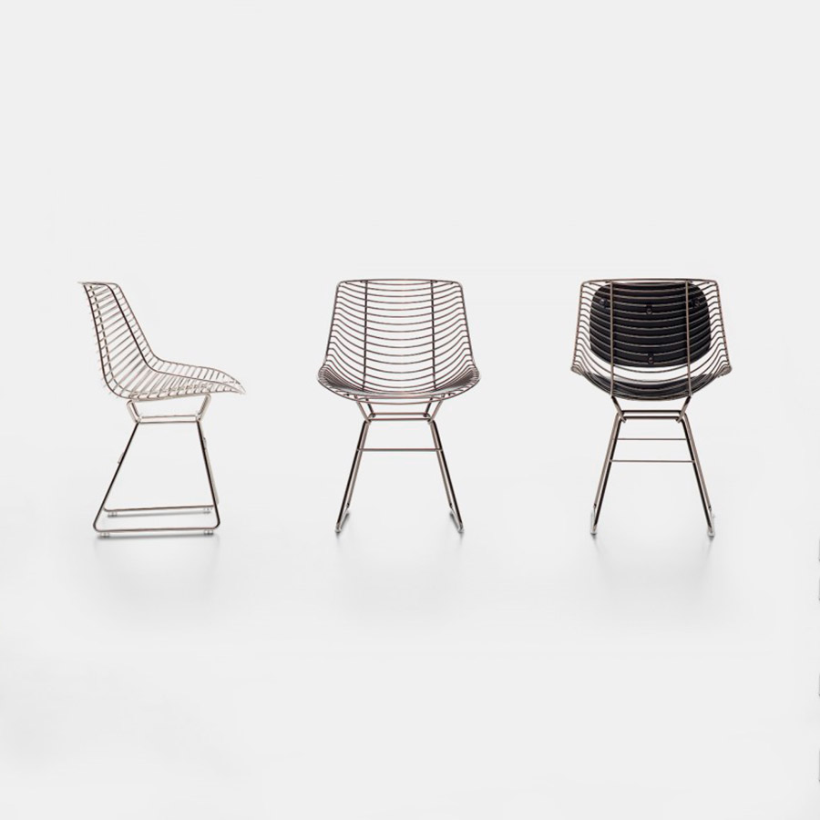Combinación perfecta de diseño y estilo manual, Flow Filo destaca por la preciosa artesanía de su procesamiento, obtenida al soldar los alambres de acero delgados y brillantes que lo componen. Como un artefacto precioso, la silla encuentra su ubicación ideal en hogares con estilo clásico y contemporáneo, destacando como un pequeño tesoro para contemplar, antes de sentarse en ella.