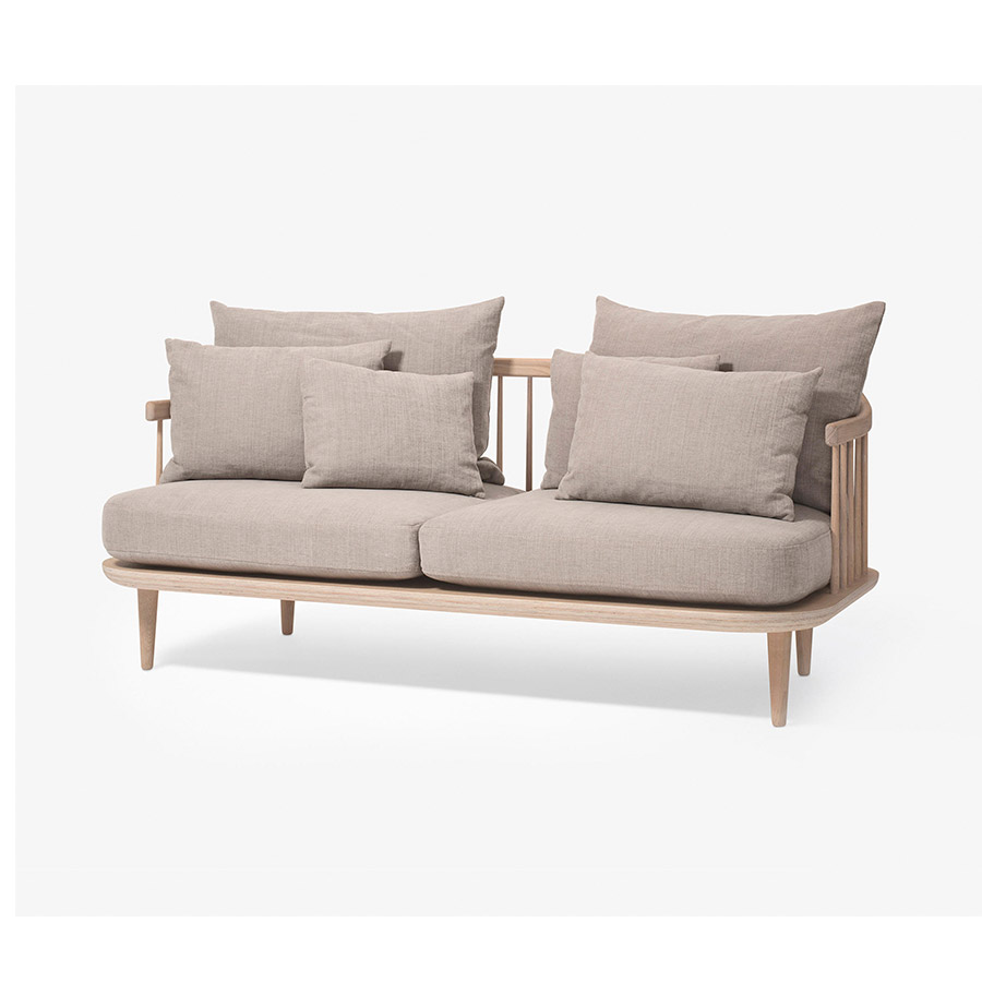 Space CopenhagenA diferencia de muchas de las butacas que forman parte del diseño escandinavo, FLY no impone ninguna postura particular. El amplio asiento está pensado para el confort, con cojines sueltos en el respaldo que se pueden colocar a gusto de cada uno. Pero FLY no deja escapar la estética ni la tradición en otros aspectos. La estructura del sillón, con respaldo de listones, está hecho de roble macizo encerado o teñido. Gracias precisamente a este material y su tratamiento, la butaca envejece con verdadera gracia, y se volverá más hermosa con el tiempo. También disponible en versión sofá y chaise-loungue.