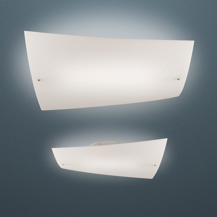Alessandro Vecchiato Carlo UrbinatiDiseñado por los fundadores de Foscarini durante los primeros años de vida de la empresa, Folio es un homenaje a la sencillez de los pequeños gestos que convierten en decorativo un proyecto de iluminación. Se trata de una lampara que recuerda una hoja de papel en tensión, en la que dos de sus ángulos se doblan ligeramente hacia la pared o el techo, con un movimiento apenas insinuado, pero suficiente para dar volumen a la forma bidimensional de una hoja. Dos pequeños tornillos unen el difusor en vidrio soplado al soporte metálico, dos puntos que se convierten en un delicado elemento decorativo. La fuente luminosa de Folio se aloja en el interior del soporte metálico y propaga, a través de su pantalla satinada, una luz cálida e intensa.