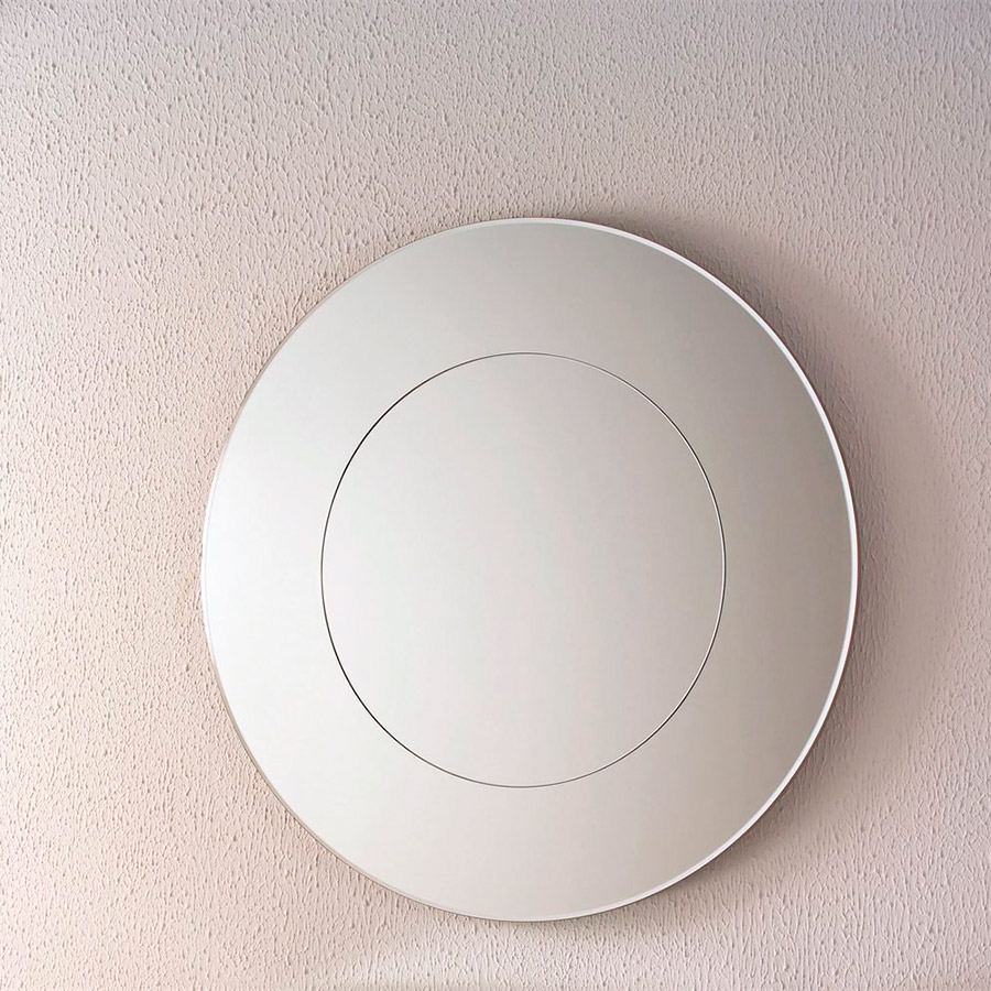 O. MoonEspejo de pared redondo. Diametro 97, compuesto por un marco exterior en espejo ahumado y el central que tiene un diametro de 59, en espejo natural.