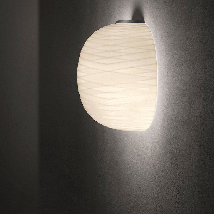 Una vibración fluida sobre el vidrio. La lámpara Gem es un objeto que seduce, que proclama a primera vista la preciosidad del material y la sabiduría de la producción artesanal. La irregularidad de la superficie de vidrio, con ondas y relieves en constante mutación, hace que esta lámpara sea inconfundible incluso cuando está apagada y crea efectos de luz inesperados cuando está encendida. Este modelo forma parte del sistema Mix & Match, que resulta perfecto tanto como elemento de decoración individual, para imprimir carácter a un cuarto, como combinado en múltiples configuraciones para que armonice con todo el ambiente.El soporte de instalación en la pared de esta lámpara está disponible en tres tonos de color con acabado opaco. Se puede elegir entre un tono suave de oro denso y profundo, un tono grafito más frío y sofisticado o, una vez más, el color blanco, si se prefiere un tono neutro que se integre con facilidad en cualquier ambiente.