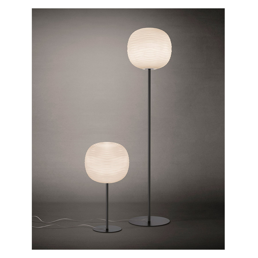 Ludovica Serafini Roberto PalombaUna vibración fluida sobre el vidrio. La lámpara Gem es un objeto que seduce, que proclama a primera vista la preciosidad del material y la sabiduría de la producción artesanal. La irregularidad de la superficie de vidrio, con ondas y relieves en constante mutación, hace que esta lámpara sea inconfundible incluso cuando está apagada y crea efectos de luz inesperados cuando está encendida. Este modelo forma parte del sistema Mix & Match, que resulta perfecto tanto como elemento de decoración individual, para imprimir carácter a un cuarto, como combinado en múltiples configuraciones para que armonice con todo el ambiente. La estructura de Gem Tavolo Alta está disponible en tres tonos de color con acabado opaco. Se puede elegir entre un tono suave de oro denso y profundo, un tono grafito más frío y sofisticado o, una vez más, el color blanco, si se prefiere un tono neutro que se integre con facilidad en cualquier ambiente.
