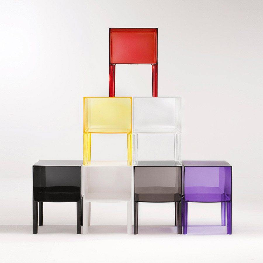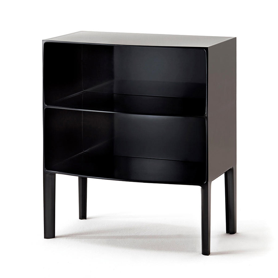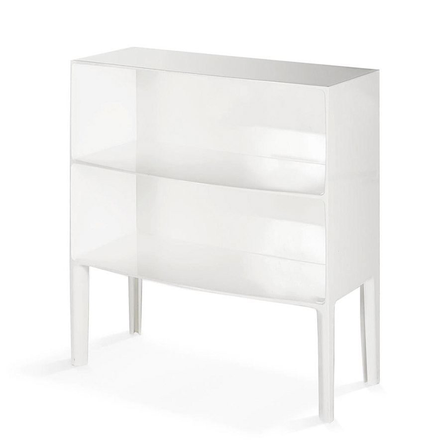 Eugeni Quitllet Philippe StarckStarck le ha dado una nueva mirada y la cómoda de estilo Kartell evoca las líneas de muebles clásicos pero con un acento contemporáneo en su transparencia y plástico. Las esquinas y curvas, líneas rectas y líneas sinuosas juegan sobre sus superficies y despiertan un juego intrigante de perspectivas y reflexiones llamativas. Ghost Buster con tres estantes frontales abiertos y sentado sobre cuatro patas bifaciales es el monobloque de plástico más grande que se haya hecho hasta ahora en el mundo del mobiliario: solo otra demostración exitosa de la determinación de Kartell de derribar todas las barreras del desafío técnico.