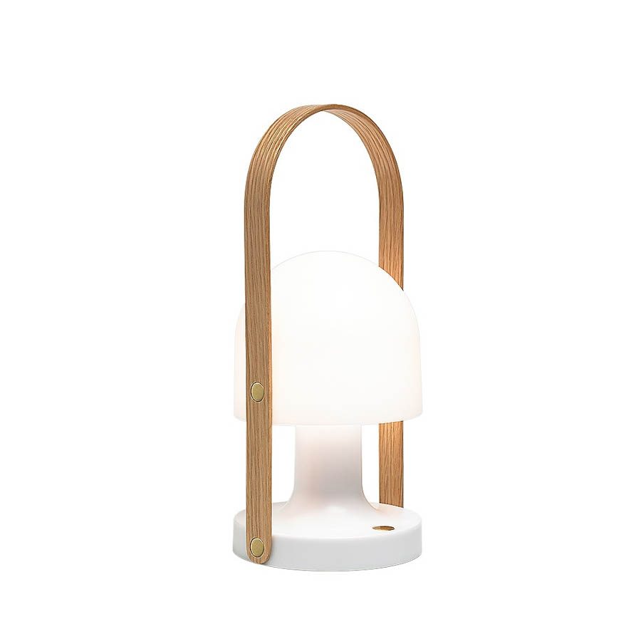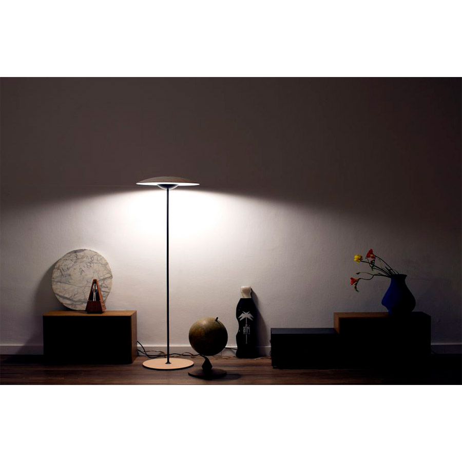 Difusor y base de madera prensada de 4 mm en roble natural o wengué. Disipador de aluminio inyectado y tija metálica lacados en negro. Disponible en Roble y Wengué y en dos tamaños.
