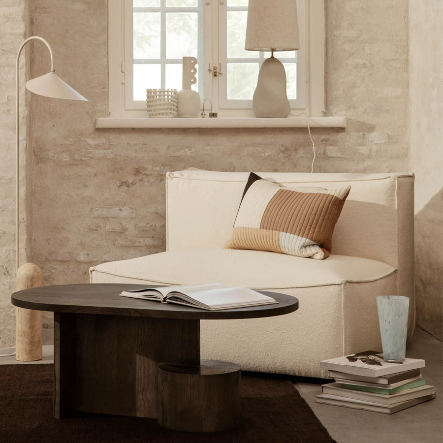 Una pieza bellamente escultórica, la mesa de centro Insert de Ferm Living es una sutil obra de arte para tu hogar que también cumple con su funcionalidad. Elaborada con maestría en roble macizo, su superficie ovalada descansa delicadamente sobre dos juntas geométricas ancladas por un robusto pedestal cilíndrico. Extremadamente duradera, es ideal para utilizar en una sala de estar, proporcionando el lugar perfecto para dejar un libro o una bebida caliente mientras te relajas. También está disponible la mesa auxiliar Insert de ferm LIVING.
