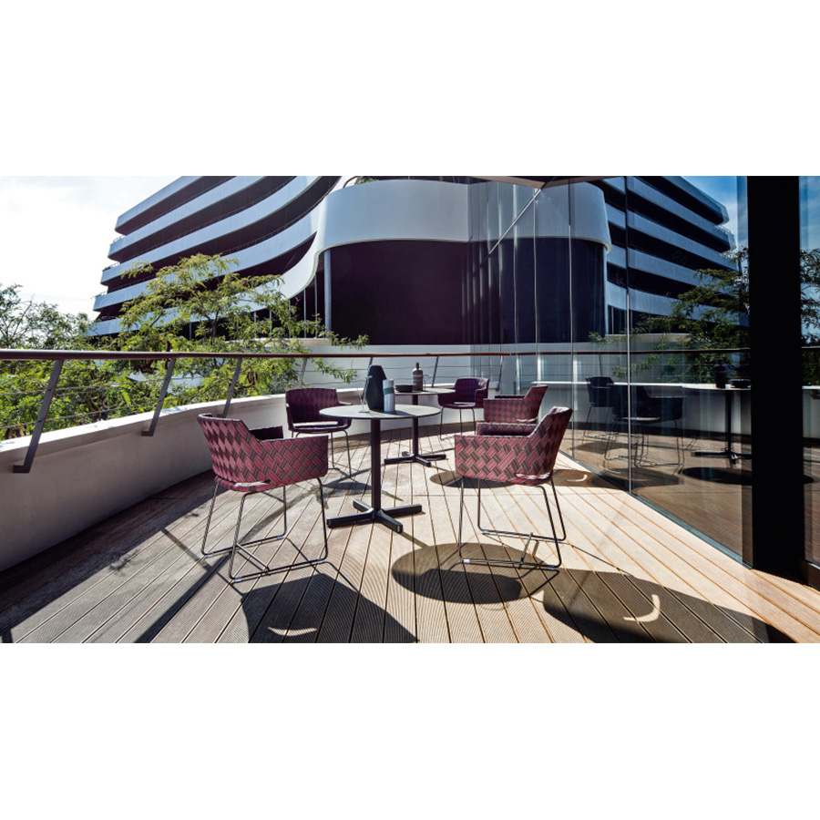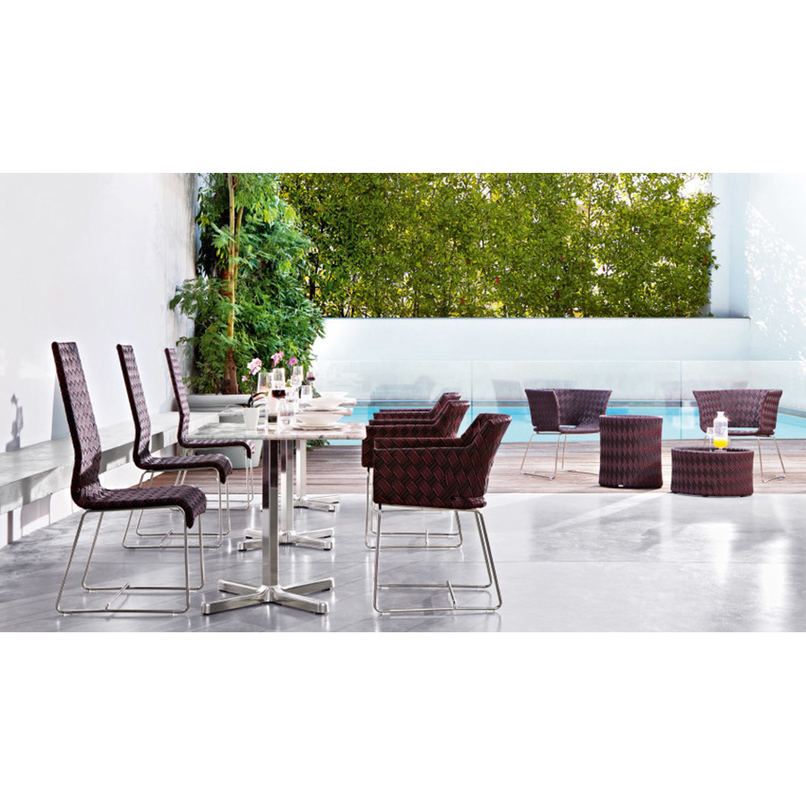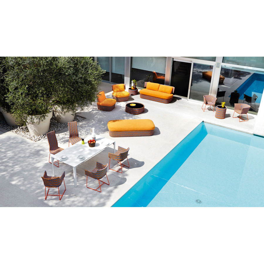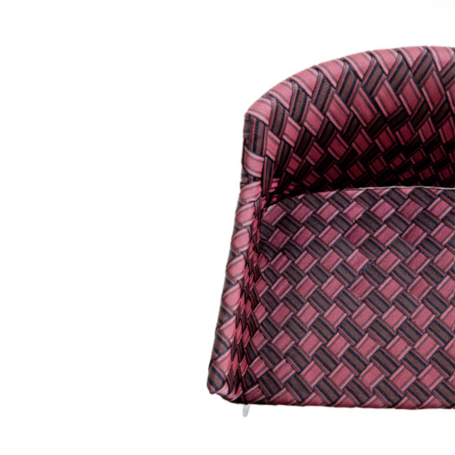 Philippe BestenheiderSillón de exterior Kente con la base disponible en varios colores y también personalizable bajo pedido con cualquier color de la carpeta RAL. Toda la serie se caracteriza por la banda multicolor tejida a mano.