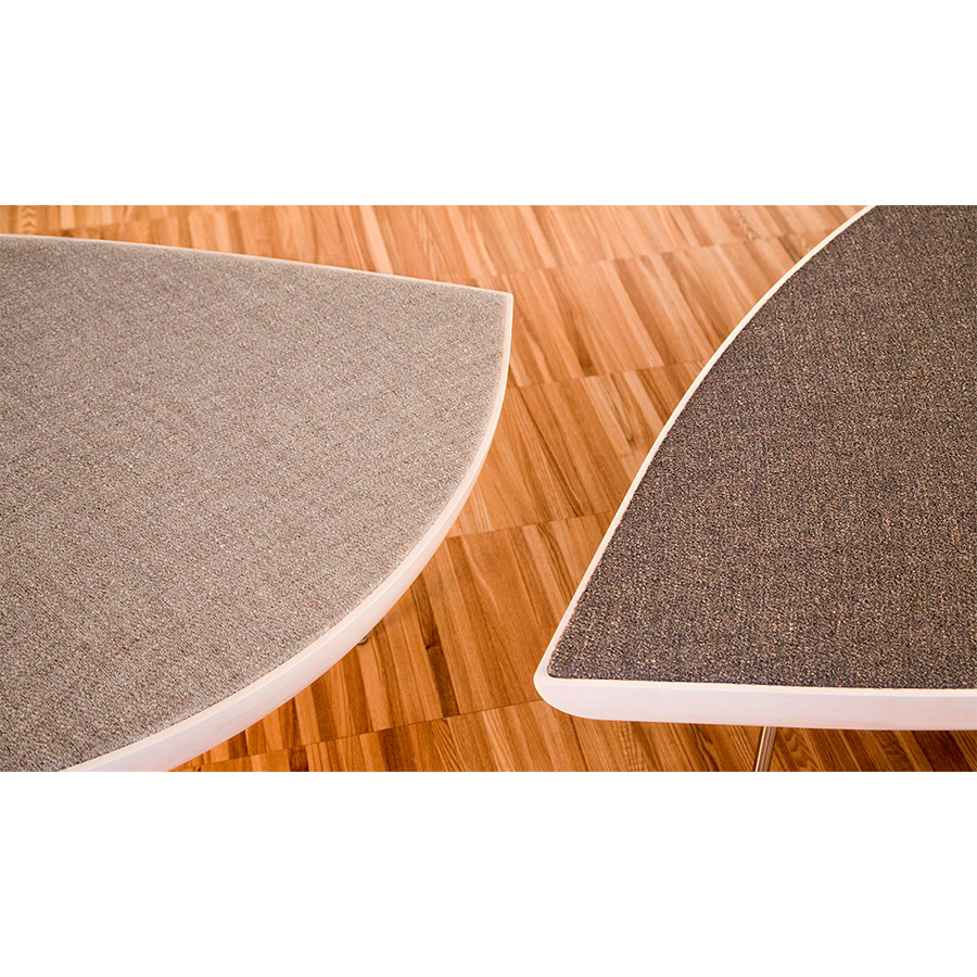 Combinando las diferentes piezas de la serie, obtenemos diferentes ritmos. Cambiando la posición u orientación de los bancos, podemos modificar el contexto y adaptarnos a las dimensiones de cualquier espacio. Para los acabados, apuesta por materiales nobles: lana, madera y acero con el fin de potenciar el componente orgánico del diseño. Konoha es una palabra japonesa que significa “hojas de árbol”.