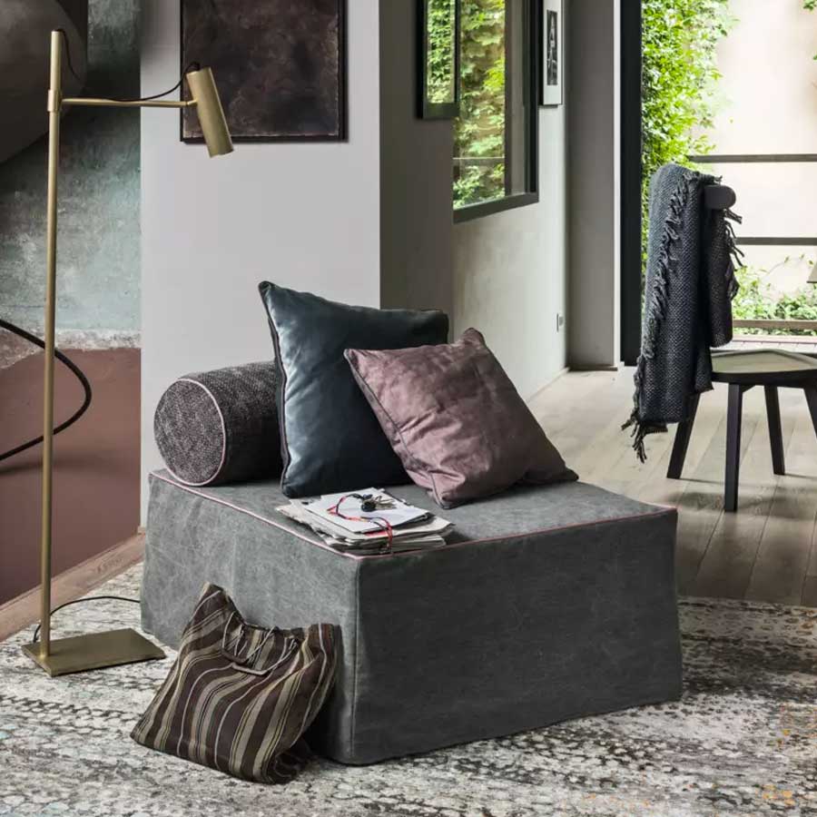 Paola NavoneReinterpretación de la típica cama oriental, la cama de suelo Kubo es una propuesta bajo el lema de la posibilidad de transformación: el somier de láminas extraíble, oculto bajo el colchón plegable, se desliza con un simple movimiento, permitiendo pasar de puf a cama individual y de sofá a cama matrimonial. Esta propuesta que ahorra espacio, gracias a su versatilidad, es ideal para completar espacios de cualquier tamaño, desde el salón hasta el estudio o el dormitorio. Estructura de madera disponible en gris, negro, blanco, océano o tórtola.