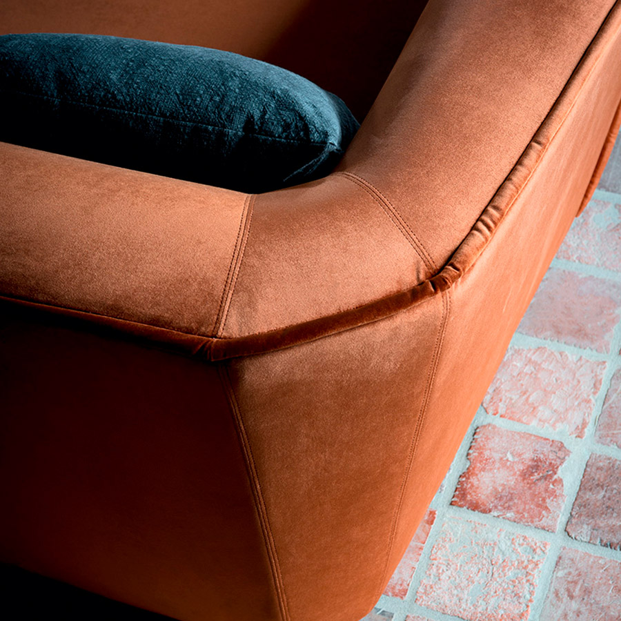 Enrico CesanaLadigue es un sofá modular de estilo soft y aspecto mullido y acogedor. Un diseño ornamentado con pinzas y suaves pliegues. La profundidad del asiento puede ajustarse según se desee con un simple gesto; un asiento “a medida” capaz de adaptarse al milímetro a las preferencias de cada usuario.