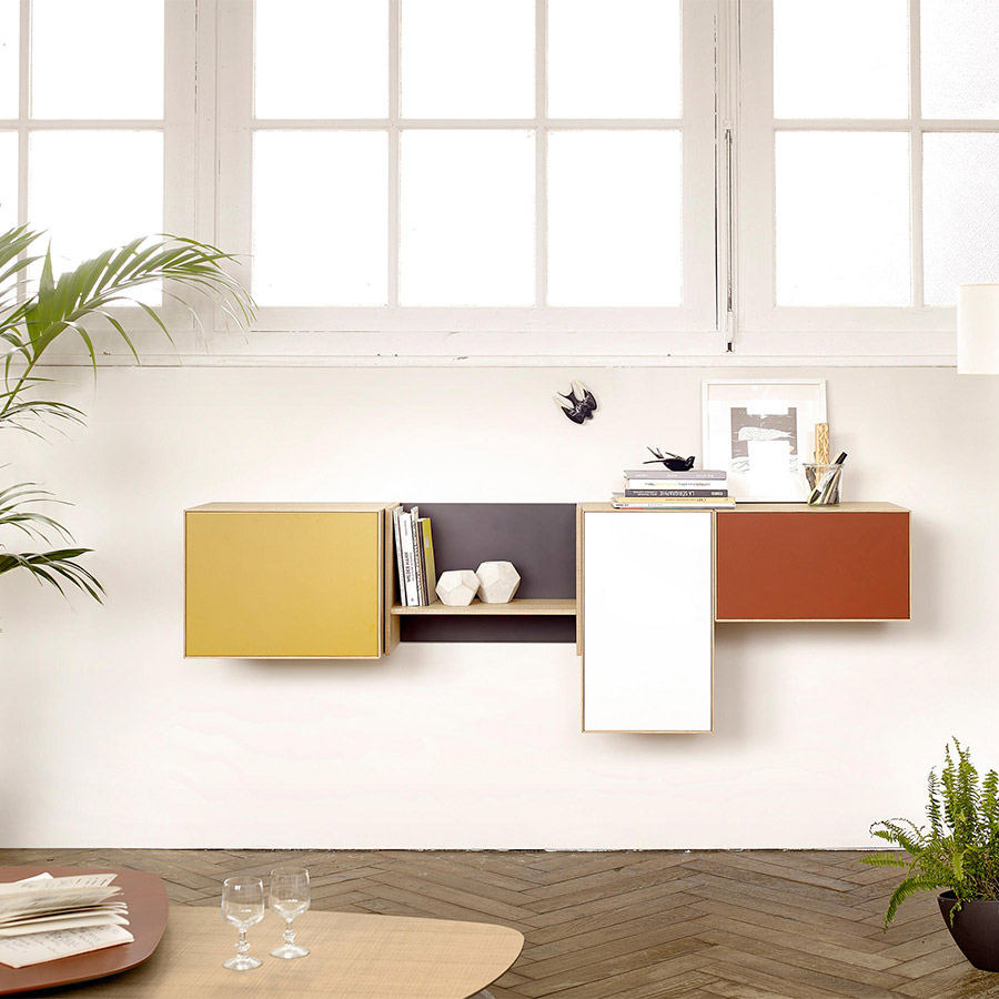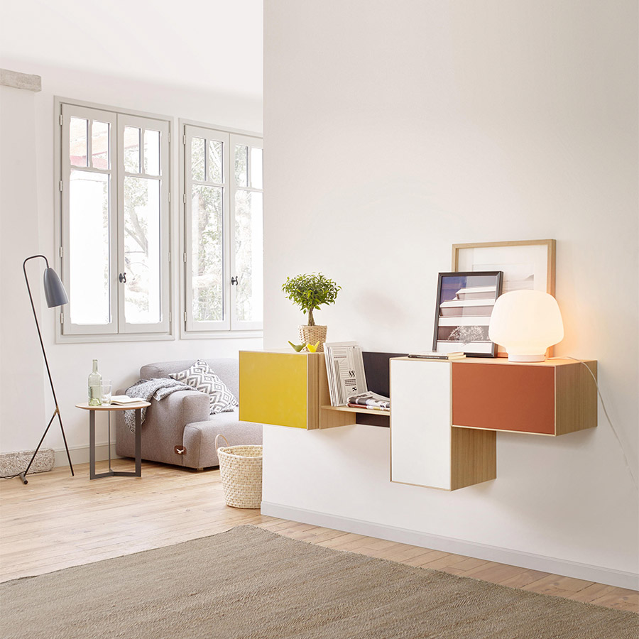 La colección Lauki es pura versatilidad. Está formada por distintos módulos que puedes colocar en el suelo, apilar o colgar en la pared, adaptándose a cualquier espacio. Con una amplia variedad de medidas, acabados y funciones (cajones, puertas, módulos abiertos…), las posibilidades de personalización son casi infinitas.