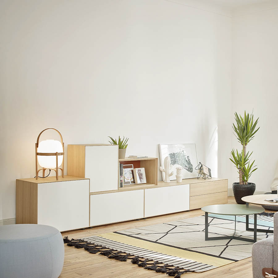 Un solo módulo puede servir como mesilla de noche o como cajonera en la oficina. Con unos pocos, puedes crear una solución práctica para el recibidor o darle vida a cualquier rincón. Y si combinas varios, Lauki se transforma en un mueble de televisión, un aparador o incluso una cómoda para el despacho. Sea cual sea tu necesidad, siempre hay una forma de hacer que encaje a la perfección en tu hogar.