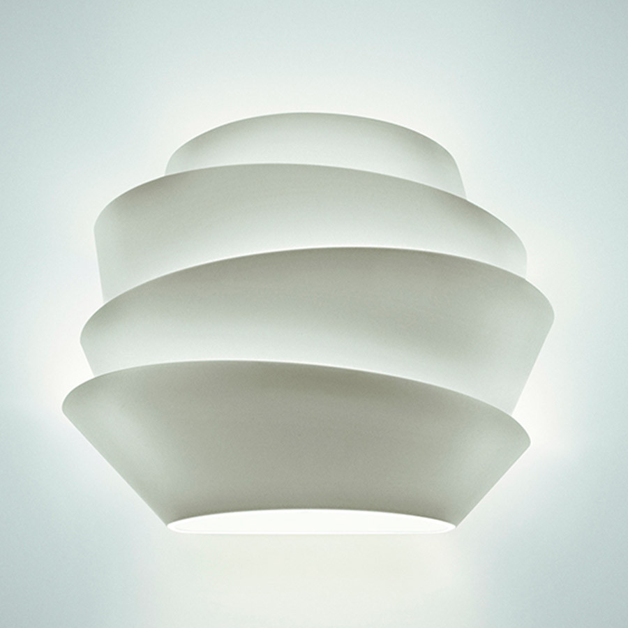 Vicente Garcia JimenezLámpara de pared de luz difusa y reflejada. Una forma compuesta por bandas superpuestas, asimétricas y dinámicamente irregulares, que hacen las veces de elementos reftectantes hacia el interior y de difusores hacia el exterior, creando un efecto cálido y solar, gráfico y luminoso al mismo tiempo. Un concepto que de la lámpara de suspensión Le Soleil se expande hasta convertirse en un sistema, incluyendo un modelo de pared, con la misma inconfundible presencia escénica y emocionante luminosidad: tanto sola como en composiciones. coordinadas. La versión de pared de Le Soleil no es una simple adaptación del modelo de suspensión sino que se ha pensado de nuevo completamente en las proporciones, en sintonía con la utilización de pared.
