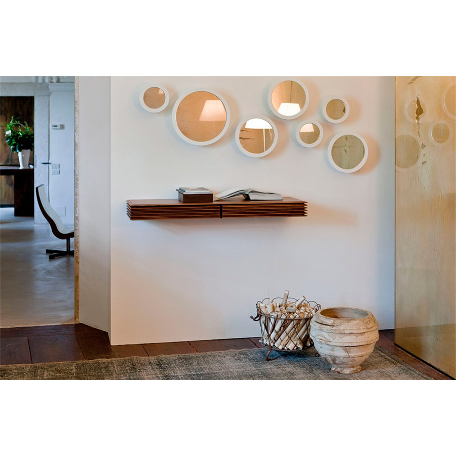 Estante en nogal canaletta con dos cajones. Las dimensiones de Lineas 117 es 117x35x11H