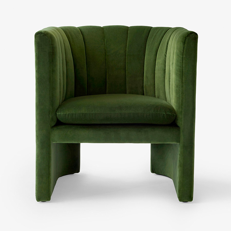 Diseñado por Space Copenhagen para el lobby del icónico Hotel SAS Royal en Copenhague, el sillón Loafer es hermoso desde todos los ángulos. Diseñado para crear una sensación acogedora de intimidad y relajación en espacios abiertos y concurridos. El hermoso respaldo festoneado se inspira en la escalera de caracol del hotel y las grandes columnas circulares, enfatizando su silueta impresionante, limpia y lineal. Ya sea que se utilice como una gran silla de salón en una sala de estar o en un hotel o restaurante, este sillón representa elegancia y sofisticación lujosas.