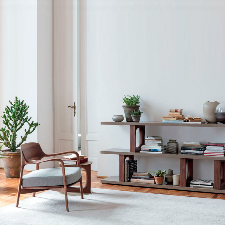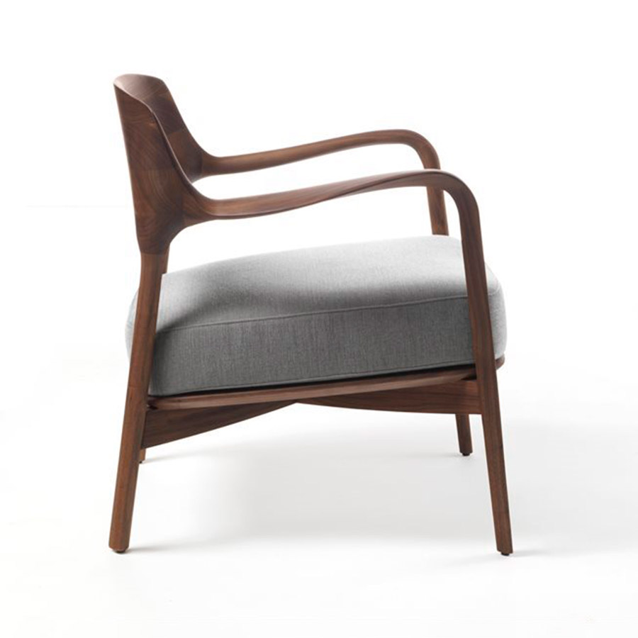 P. JouinButaquita con brazos y estructura de nogal canaletta macizo. Asiento de nogal canaletta maciazo con relleno en goma de densidad diferenciada con soporte interno de contrachapado revestido en las telas de la colección. Con pies de nylon. Louis además de ser una butaca de extremada comodidad gracias a sus formas ergonómicas, es una escultura, el detalle de sus brazos y respaldo muestra el espíritu de Porada, que, además de contar con la mayor tecnología, mantiene un carácter traidcional ebanista.