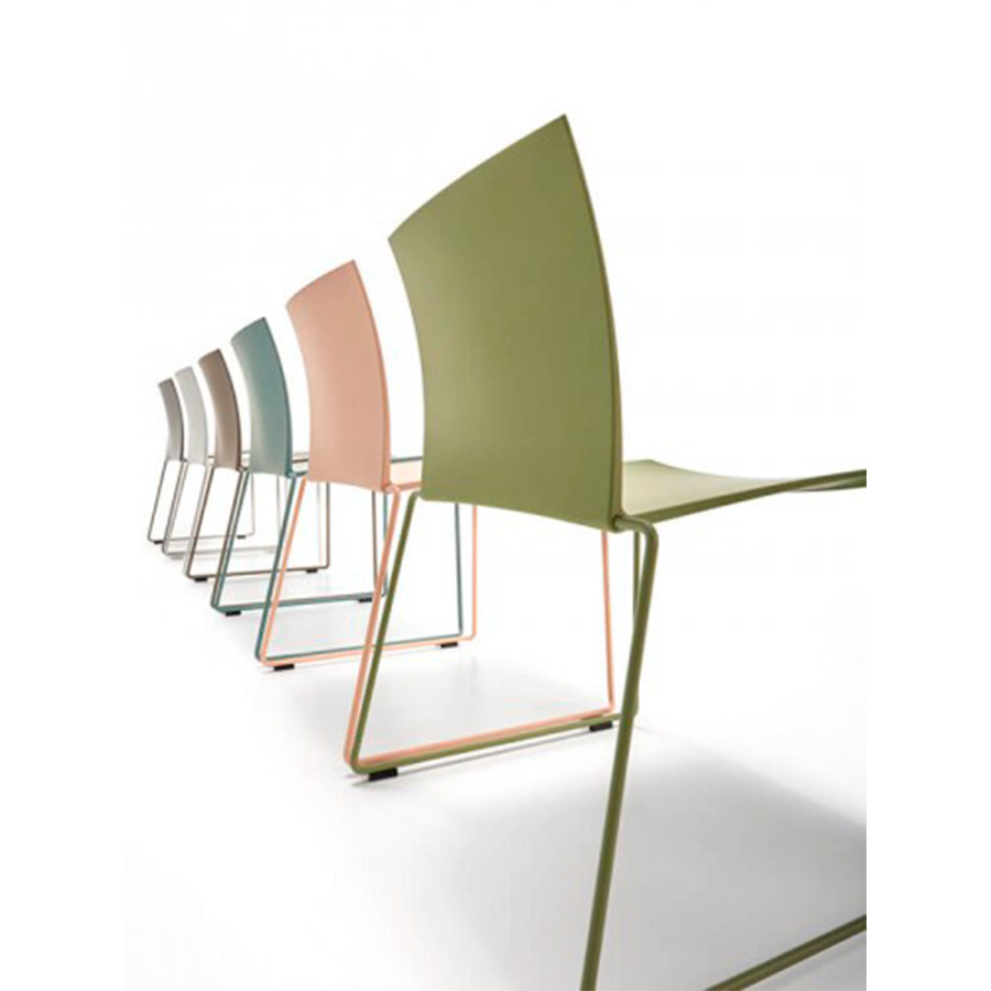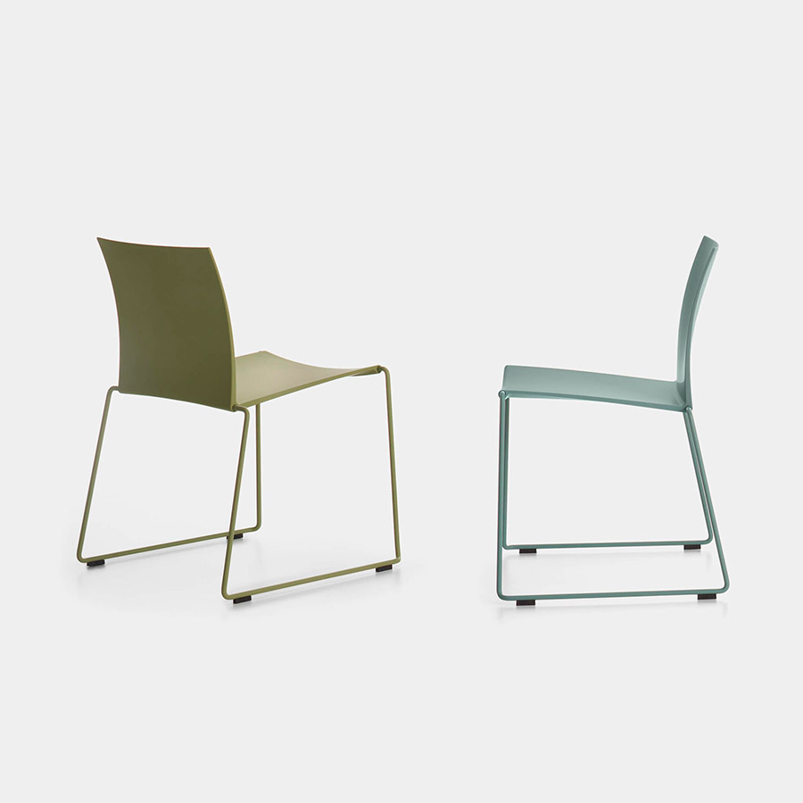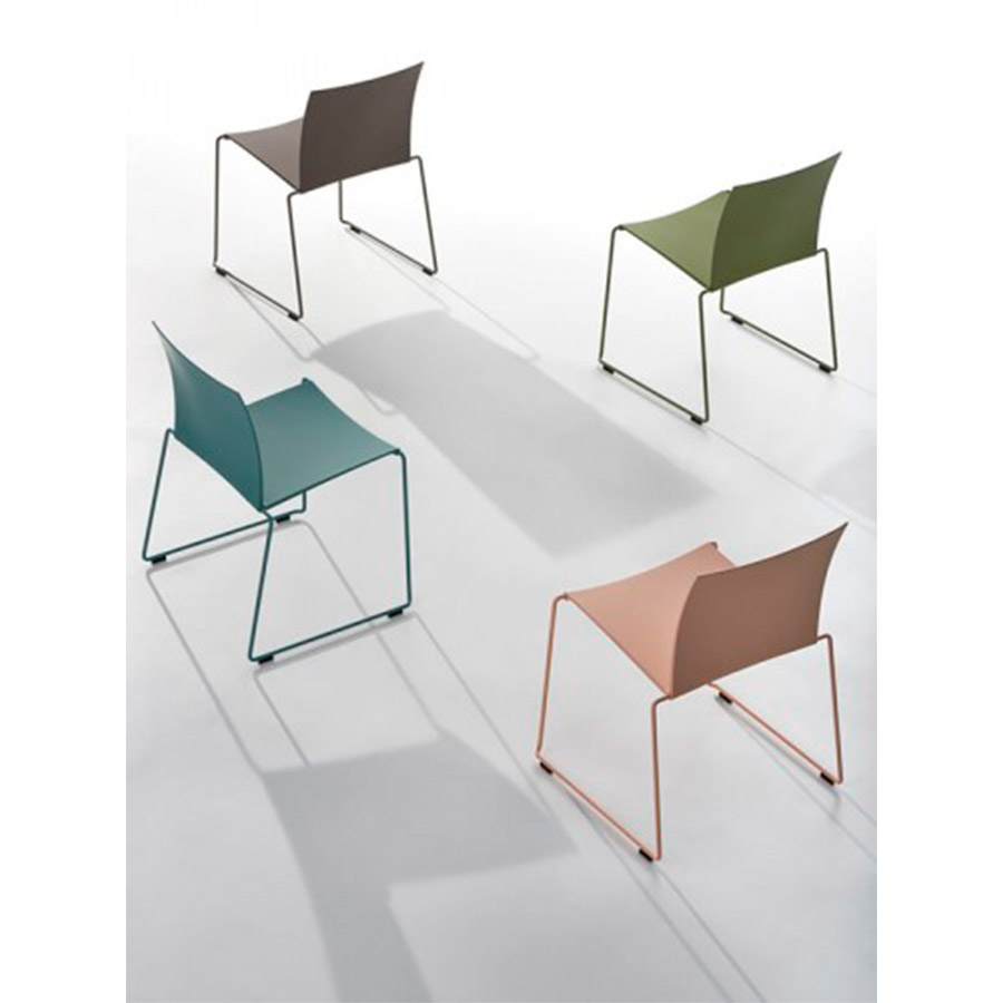 Para esta silla hoy, se pueden seleccionar diferentes tonos: azul de aviación, barro, polvo, verde, plomo, así como el blanco tradicional. Un color, una emoción para satisfacer las necesidades de los diferentes entornos: desde el hogar (cocina, sala de estar y dormitorio) hasta espacios de negocios, como oficinas, salas de conferencias, y lugares públicos, como bares y restaurantes.