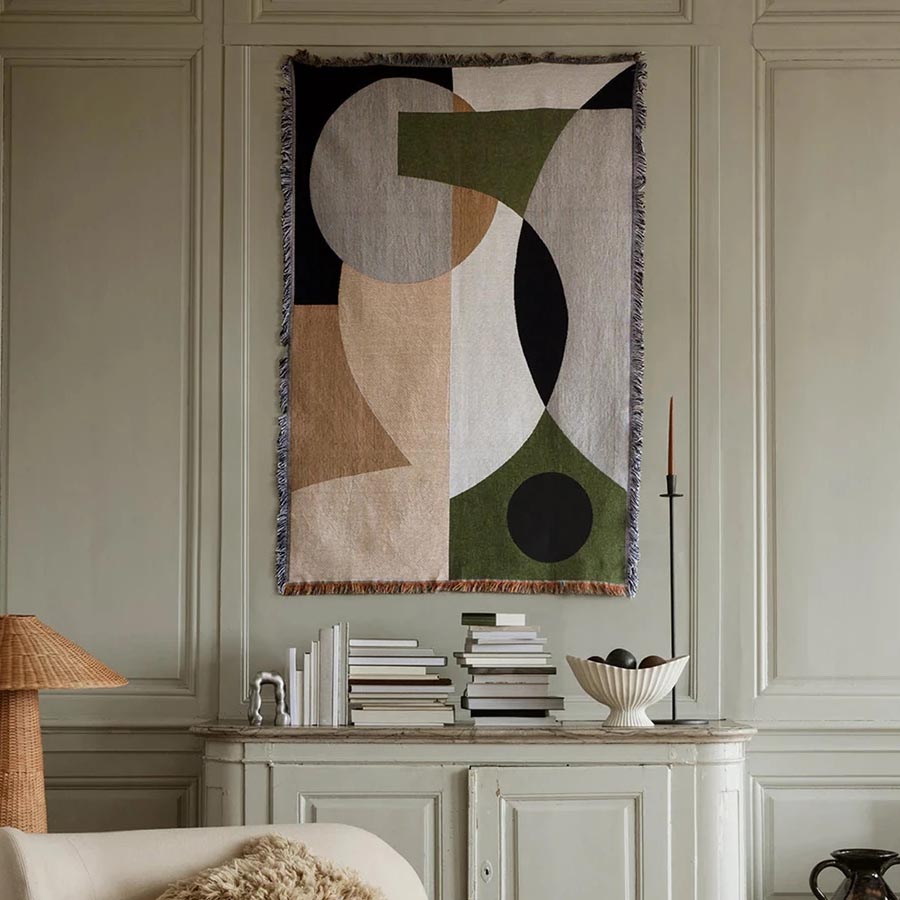 Tejida en 100% algodón utilizando técnicas clásicas de tapicería, la manta tapiz Entire de ferm LIVING es suave al tacto y tiene flecos decorativos alrededor de los bordes. Con el poético y hermoso arte de Berit Mogensen Lopez, su diseño abstracto agrega estilo y carácter a tu hogar, ya sea colgada en la pared como una decoración impactante o usada como una acogedora manta para envolverse durante los meses de invierno.