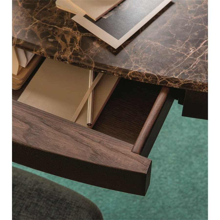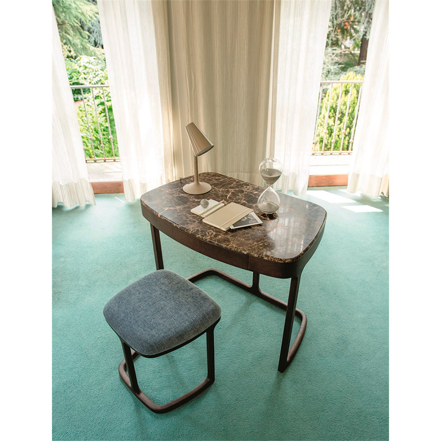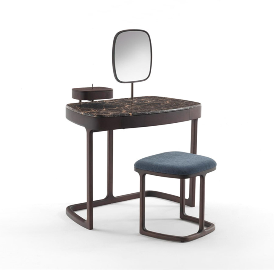 E. GallinaTocador con cajón. Estructura en fresno macizo y tapa en mármol. Puede ser combinada con su taburete y también con un cajón portaobjetos con espejo orientable.