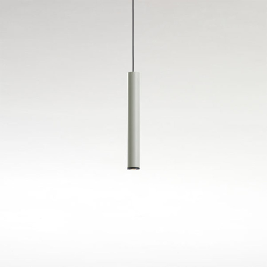 A este cilindro se le pueden añadir distintas pantallas cónicas en blanco perla, negro, beige, gris y rojo, y en varias medidas. Pero lo más ingenioso es que cada una de estas lámparas puede llevar un simple contrapeso que permite que, al colgarlas entre dos puntos, se puedan mover. Estructura tubular y pantalla en aluminio lacado con difusor de policarbonato translúcido. Cuerda con contrapeso que permite mover la lámpara a lo largo del espacio.