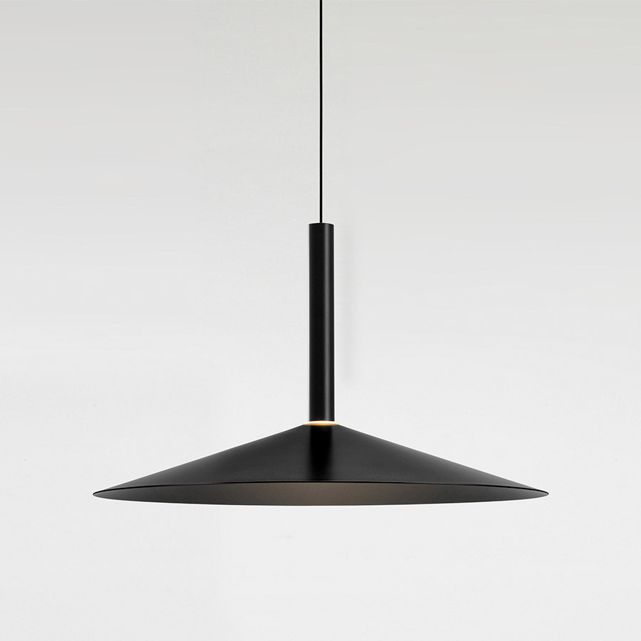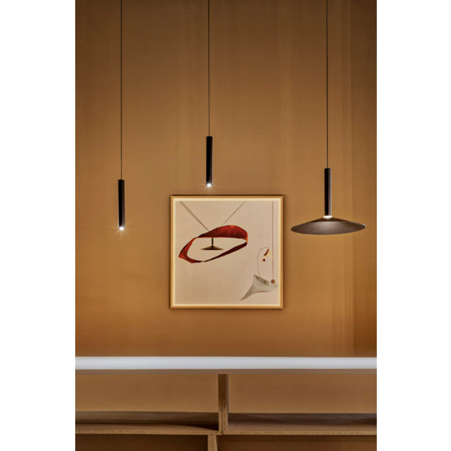 Paradójicamente este nuevo diseño empieza con la deconstrucción del arquetipo de una lámpara: sintetizándola al máximo, se queda solo con un cuerpo cilíndrico suspendido con un LED incorporado.