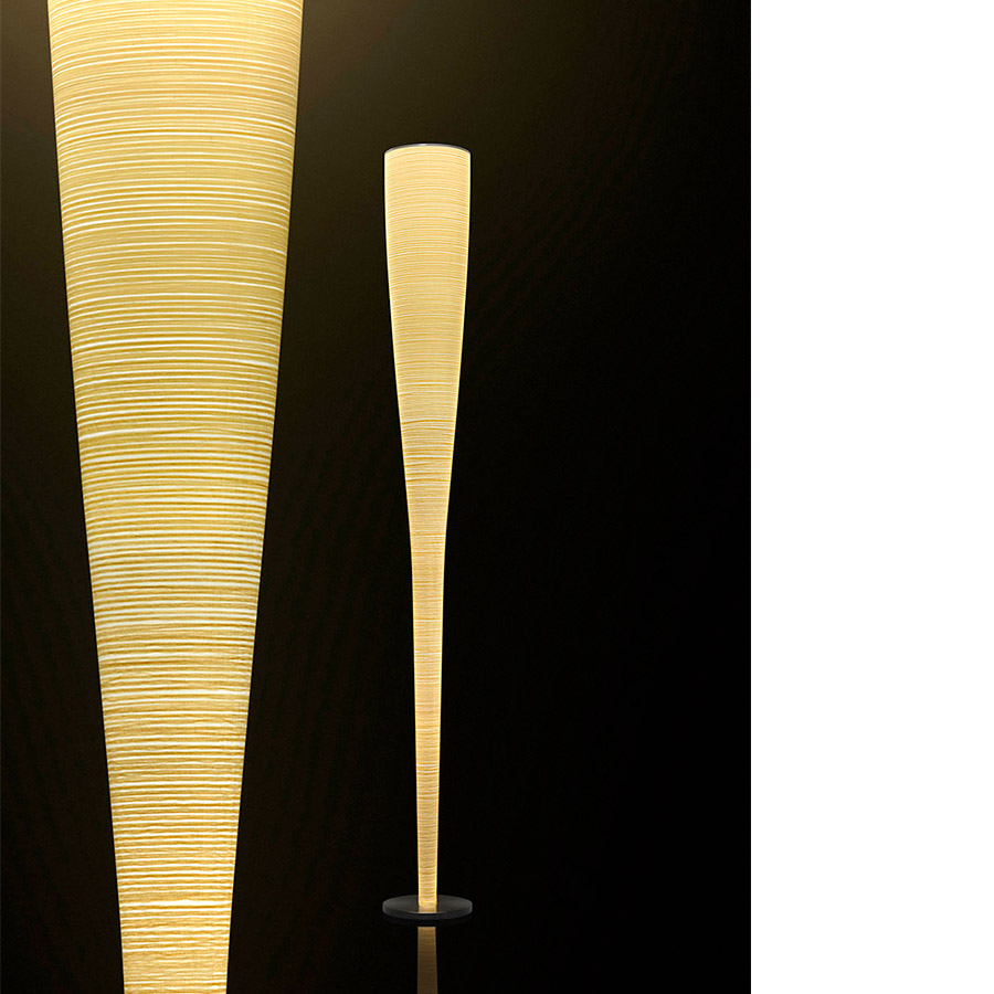 La colaboración entre Foscarini y Marc Sadler inicia con Mite, una lámpara de pie tan innovadora que se adjudicó el Compasso d'Oro del 2001. Para Mite, empresa y diseñador han desarrollado una patente especial: una mezcla de fibra de vidrio e hilo de carbono o de Kevlar®, que hace las veces contemporáneamente de decoración y de estructura portante. Una tecnología ya utilizada para la producción de cañas de pescar, remos y palos de golf, que se utiliza por primera vez en el mundo de la iluminación. Su forma de planta circular se dibuja ampliándose hacia arriba, donde se encuentra la fuente luminosa. Gracias a un juego de parábolas internas, Mite garantiza una óptima iluminación, proyectando un intenso y cálido haz luminoso hacia el techo. La iluminación interna potencia en cambio la decoración y su forma esbelta. Mite amuebla cualquier ambiente con una presencia que no molesta y con su elegante personalidad.