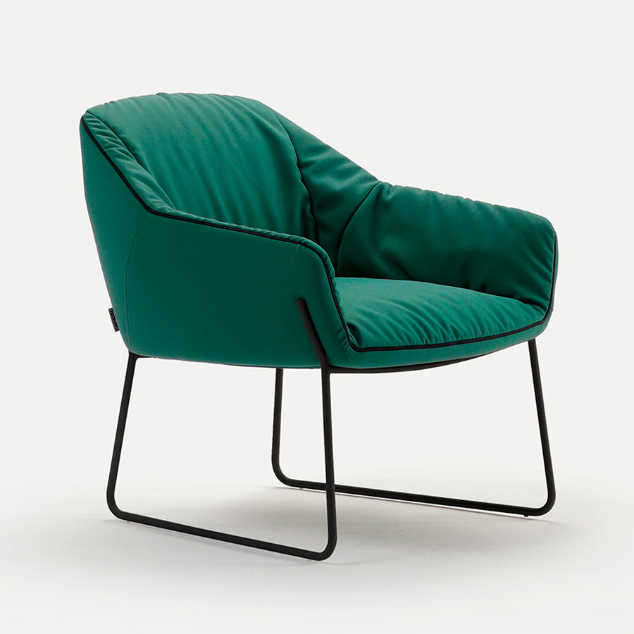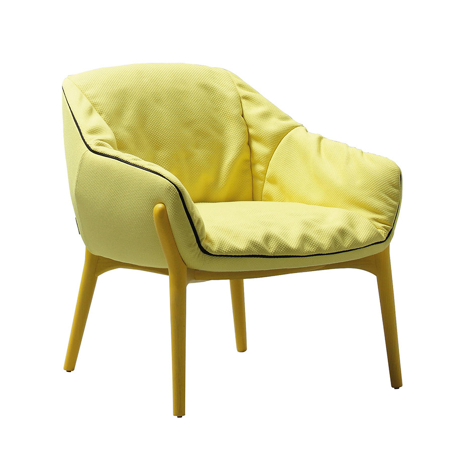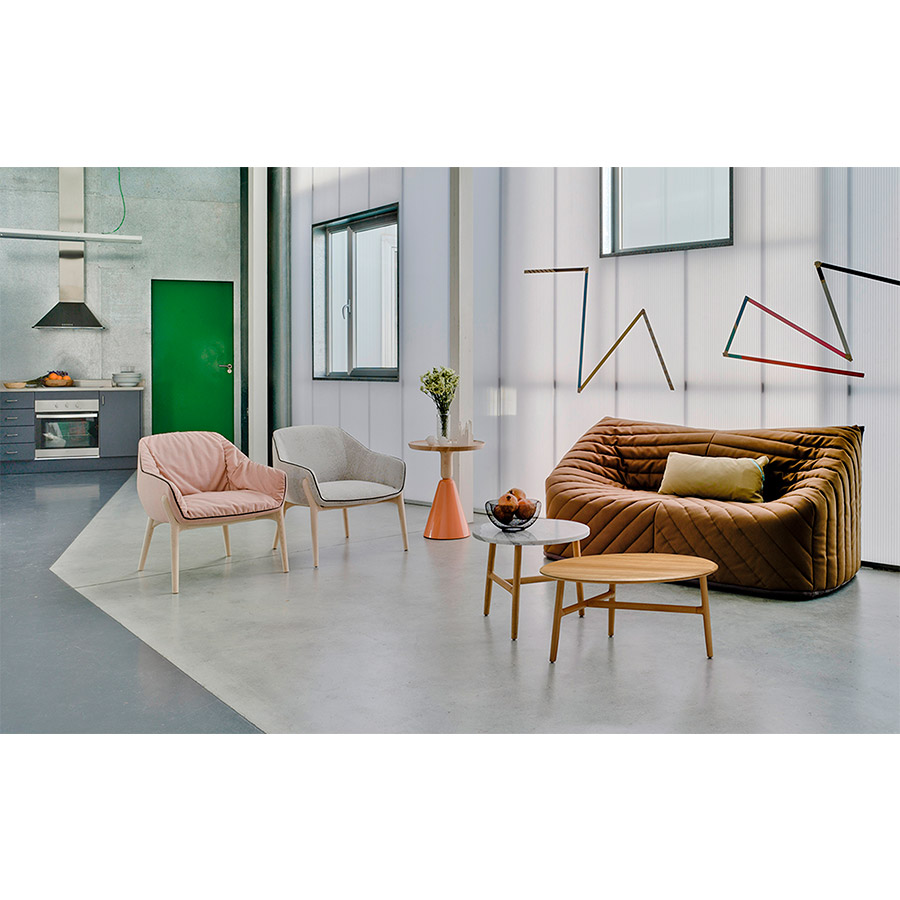 El asiento o Nido está sustentado por una base de madera de fresno que es el resultado de un artesanal trabajo de carpintería. Como si de las ramas de árbol se tratara, la parte superior de las patas abraza y rodea el asiento. El fresno está disponible en una amplia gama de tintes; desde tonos muy naturales hasta los más artificiales como el verde o el naranja. El textil que recubre el asiento está disponible en dos versiones (con cremallera o con vivo). La versión con cremallera perimetral es más mullida y permite desenfundar la parte interior de la butaca. La versión con vivo es totalmente fija y con un tapizado más tenso. La parte exterior del asiento está facetada para remarcar todas sus líneas. En contraposición, la parte interior es mucho más suave, mullida y acogedora.