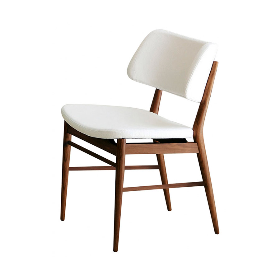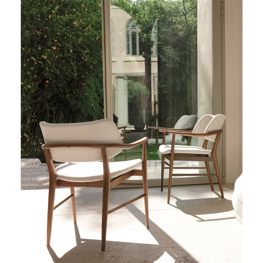 M. Marconato T. ZappaPosibilidad con y sin brazos. Silla muy ligera gracias a su respaldo separado del asiento, pero muy sólida. Estructura en nogal canaletta macizo y revestimiento en las telas de la colección.