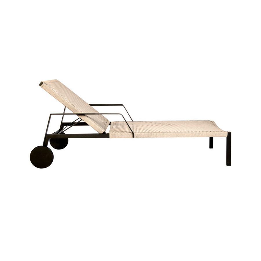 Ligera y liviana, la silueta de la tumbona Nodi se caracteriza por sus fibras entrelazadas y trenzadas de Canax® resistentes a la intemperie, que se estiran a lo largo de una esbelta estructura. Con su innovadora mezcla de PVC resistente a la intemperie y un cáñamo natural que le confiere suavidad, Canax® es un tejido sumamente agradable, ideal para lograr una comodidad perfecta.