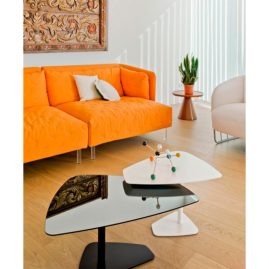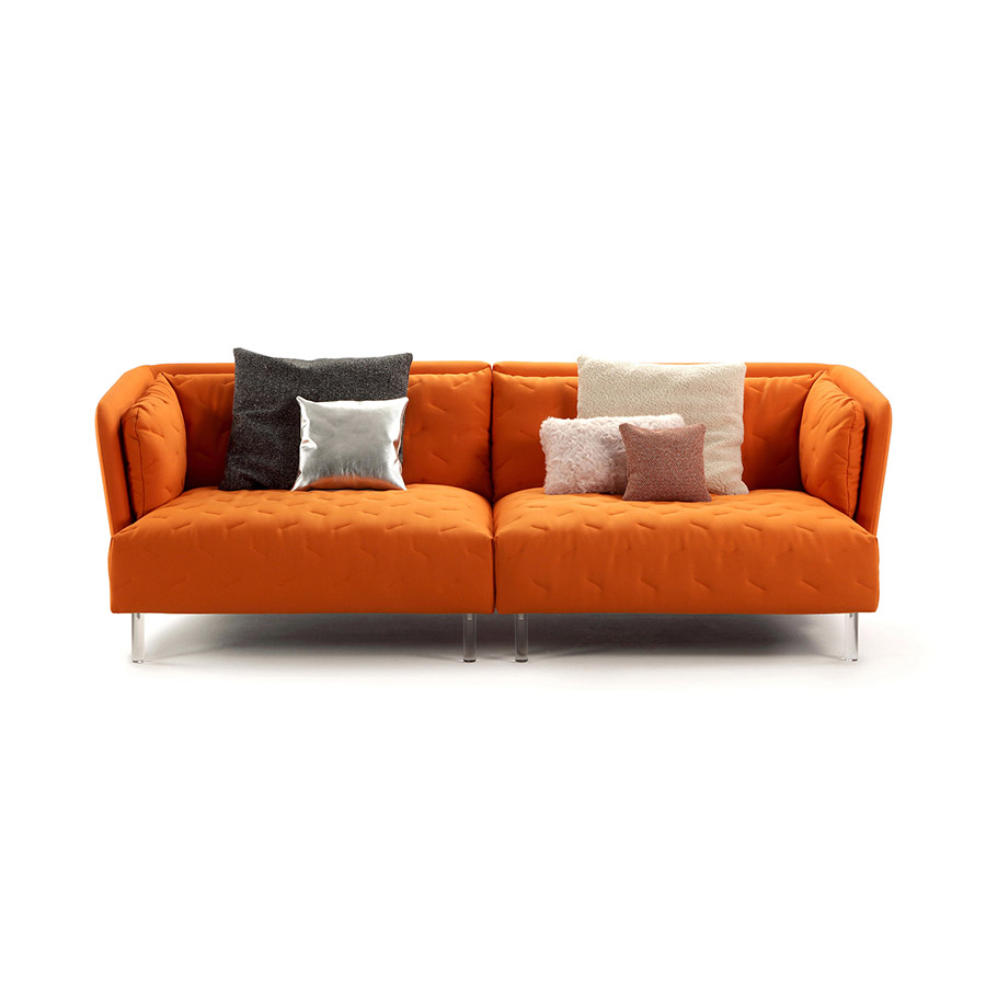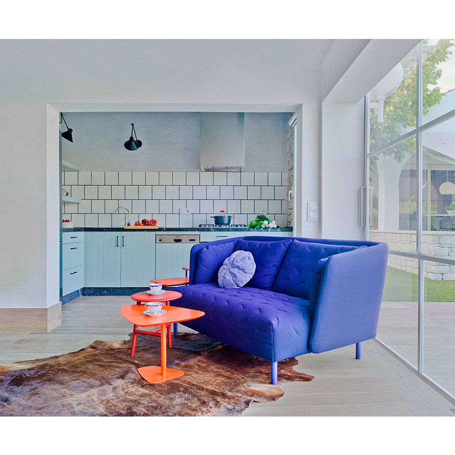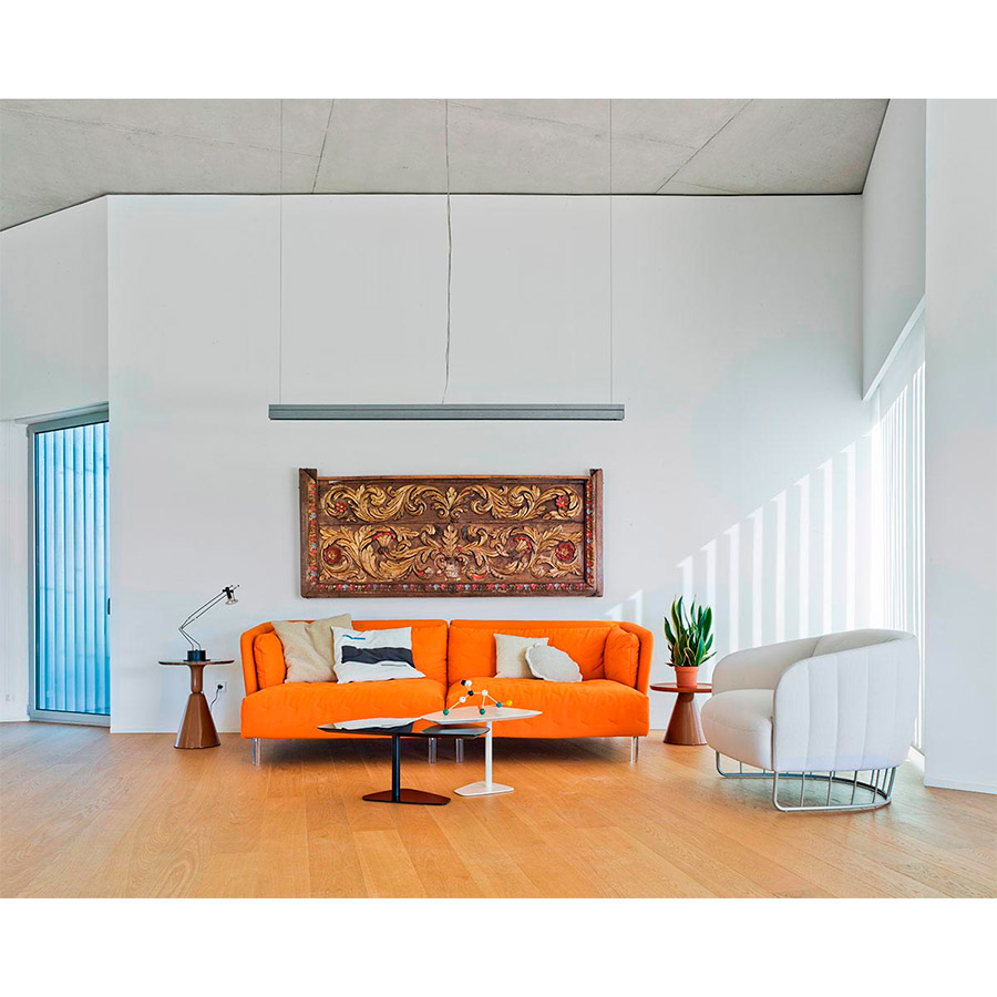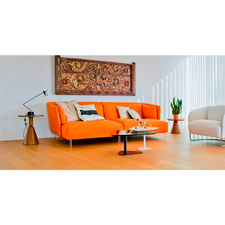 Para aligerar el diseño, Rafa ha proyectado unas sencillas y esbeltas patas (transparentes o de fresno tintado) que lo elevan considerablemente del suelo. En la versión de metacrilato esta sensación área es mucho más evidente. Obi es tan cómodo como práctico. Gracias a su extensa modulación es posible hacer multitud de configuraciones. Destacamos los ángulos largos para hacer estilizadas composiciones de rincón y la chaise de 134cm con la que configurar un sofá con más fondo.