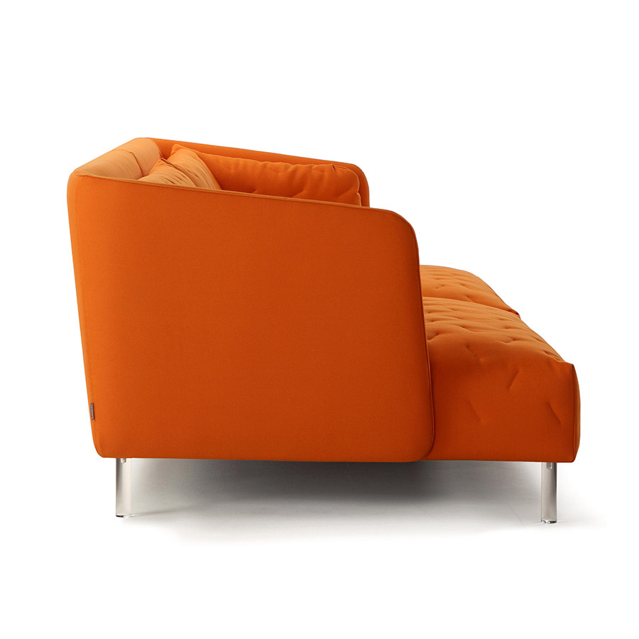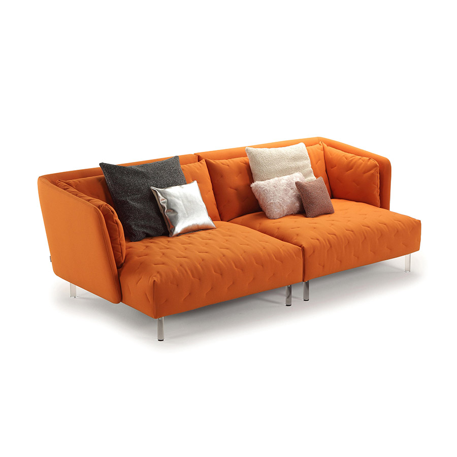 Rafa GarciaInspirado en la esponjosidad de los lazos de los kimonos (obis en japonés), el nuevo diseño de Rafa García para Sancal es un “sofá-colchón” extraconfortable. La altura del respaldo y la curvatura de sus brazos abrazan a quien se aposenta en sus mullidas almohadas. El acolchado textil refuerza esta sensación de suavidad.