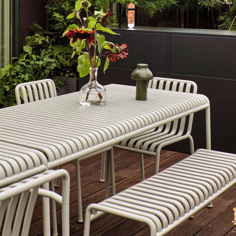 Ronan y Erwan querían diseñar una serie versátil y sencilla de muebles para exteriores que pudiera adaptarse a casi cualquier entorno al aire libre, desde restaurantes, jardines, terrazas y balcones. El diseño gráfico y lineal de la mesa es tanto sutilmente elegante como altamente práctico, con una construcción de acero sólido que permite una durabilidad y resistencia duraderas. Ya sea utilizada sola con un conjunto de sillas de comedor o en grupos para crear un amplio espacio de comedor al aire libre, la Mesa Palissade de HAY es una adición atemporal a un entorno al aire libre.