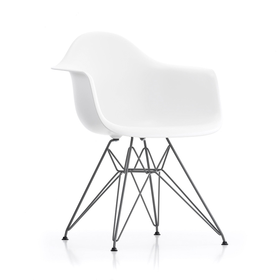 Desde el comienzo de la década de 1950, cuando Charles y Ray Eames diseñaron las Plastic Chairs, estas sillas se han convertido en iconos del modernismo americano de mediados del siglo pasado. En concreto, la silla DAR (Dining Height Armchair Rod Base) destaca como un inimitable diseño clásico que combina ligereza y elegancia en su forma con estabilidad estructural en la intrincada construcción de cable de acero de su base «Eiffel Tower».