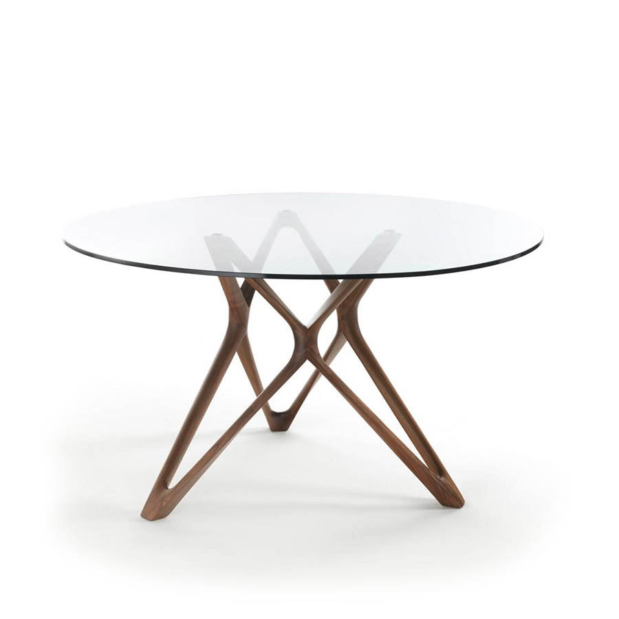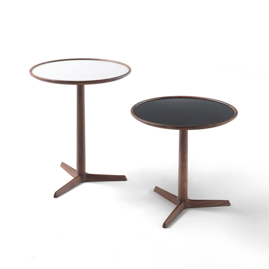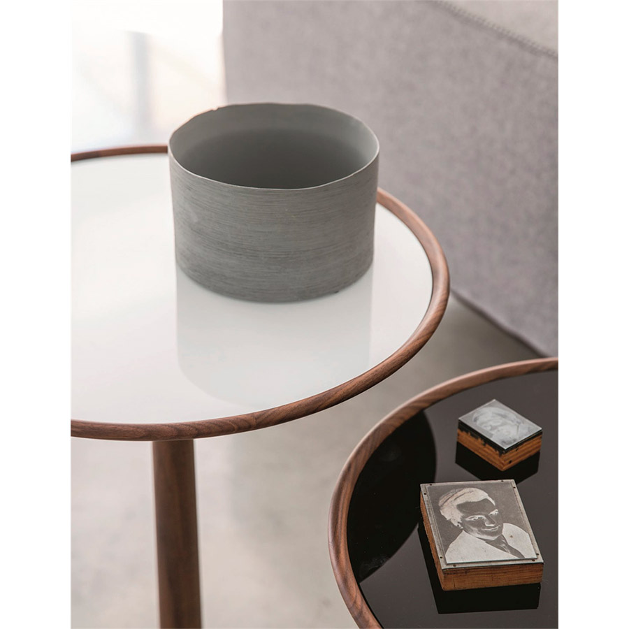 T. ColzaniMesa auxiliar en nogal canaletta macizo y tapa en cristal retrobarnizado.