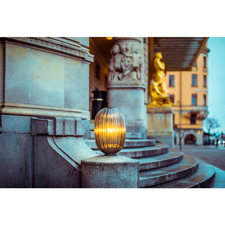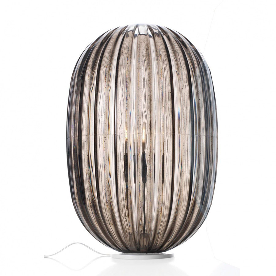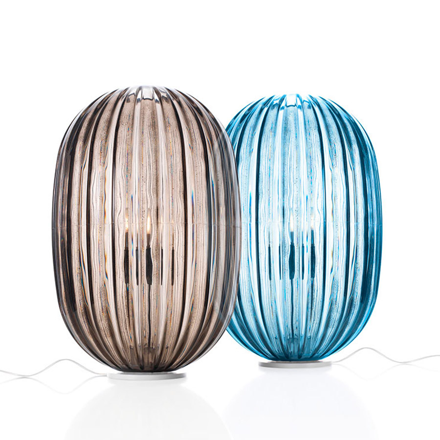 Plass Media transporta en un tamaño más reducido el gran encanto, la emocionante presencia y la mágica luminosidad de plass, un proyecto que como sugiere el nombre (unión de "plastic" y "glass") interpreta en escala diversa la imagen familiar de una perla de vidrio, utilizando un material y un proceso del siglo XXI, el policarbonato transparente moldeado en rotacional. Gracias a la tecnología utilizada, los acabados se caracterizan por ligeras irregularidades que recuerdan las imperfecciones del vidrio, resaltadas por la doble fuente luminosa. Plass recuerda una perla de vidrio esmerilado iluminada por los rayos de sol, pero en ella la luz proviene del interior y no del exterior, reflejándose en las incisiones que surcan la superficie. El efecto único que provoca es todavía más inmediato y práctico en la nueva versión plass media, disponible en los modelos de mesa y de suspensión, adecuados por volumen a los espacios de tamaño mediano.