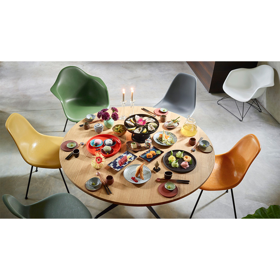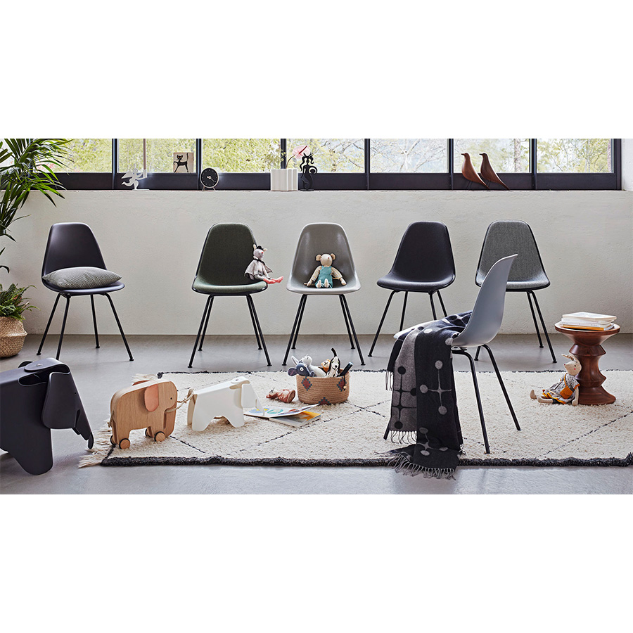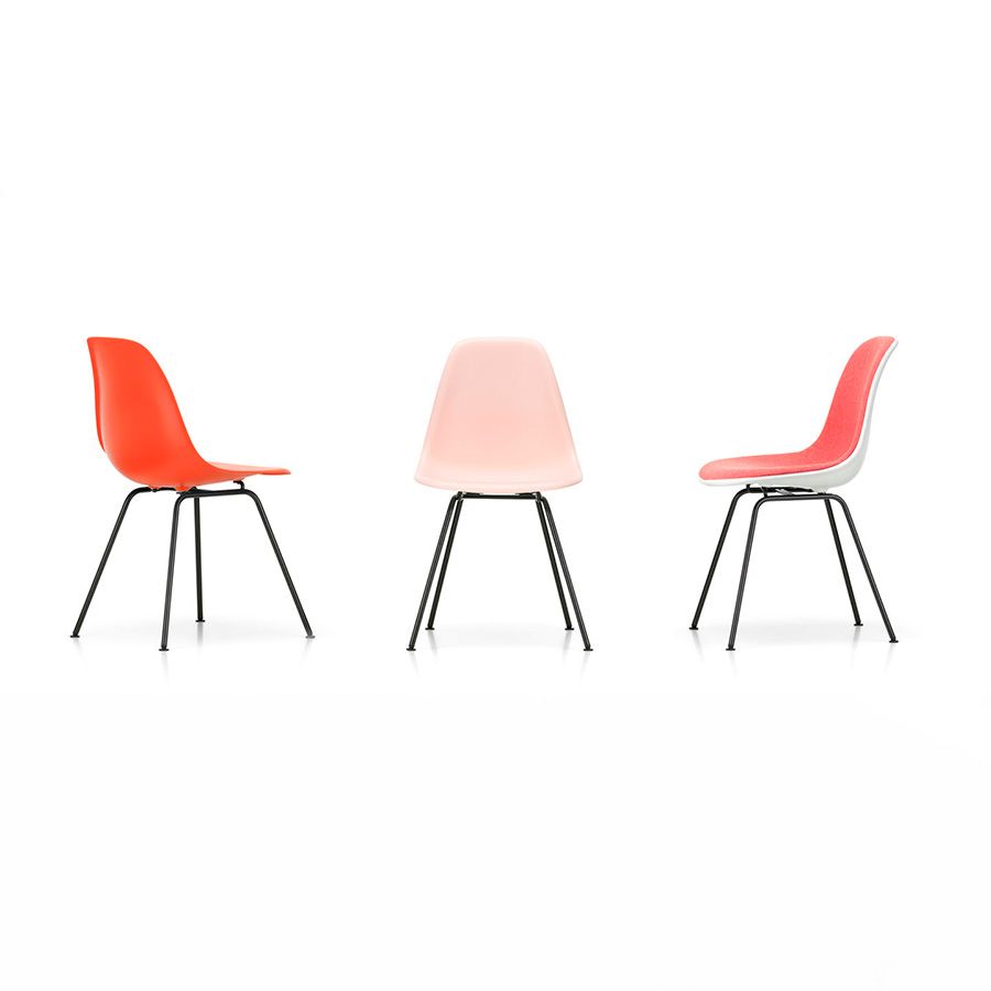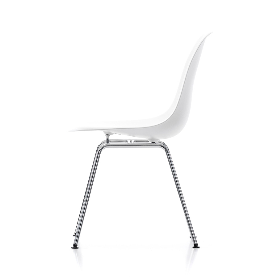 Una base de cuatro patas de acero tubular y la forma orgánica de la carcasa de la Side Chair son los componentes característicos de la discreta silla DSX (Dining Height Side Chair X-Base). La carcasa de asiento se presenta en varios colores y opciones de tapicería, mientras que la base está disponible en versión cromada o con revestimiento al polvo, siendo esta última ideal para terrazas y jardines.