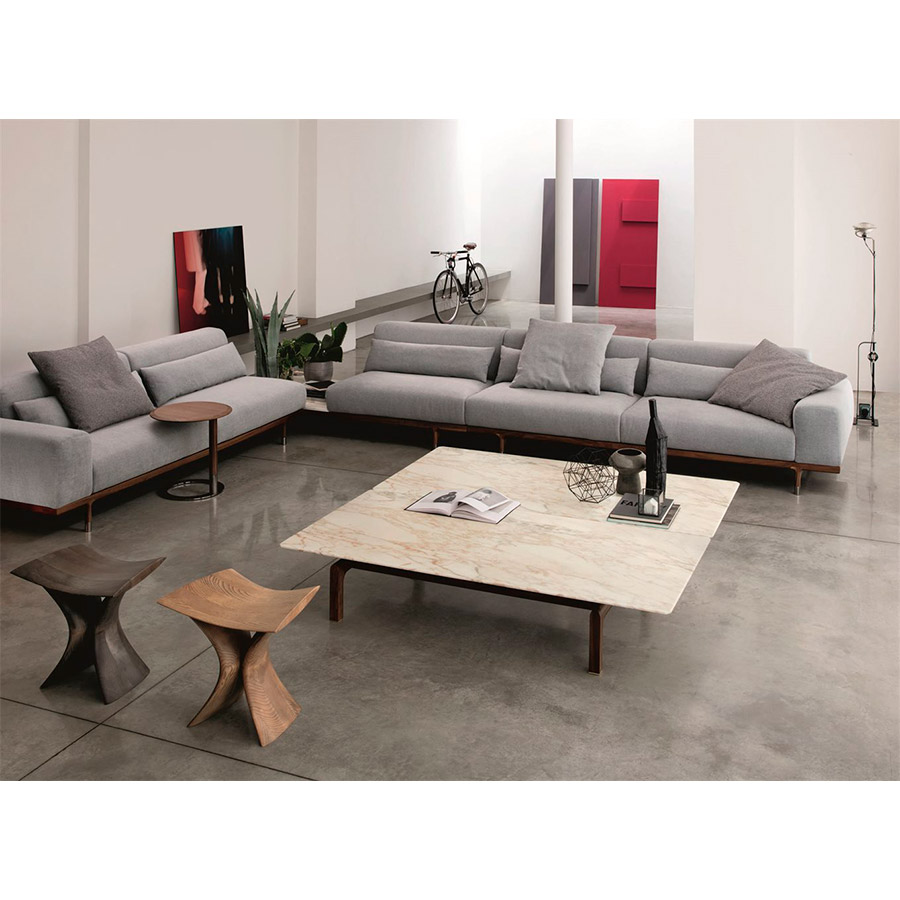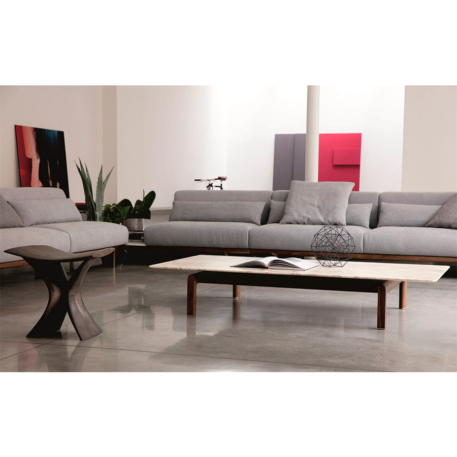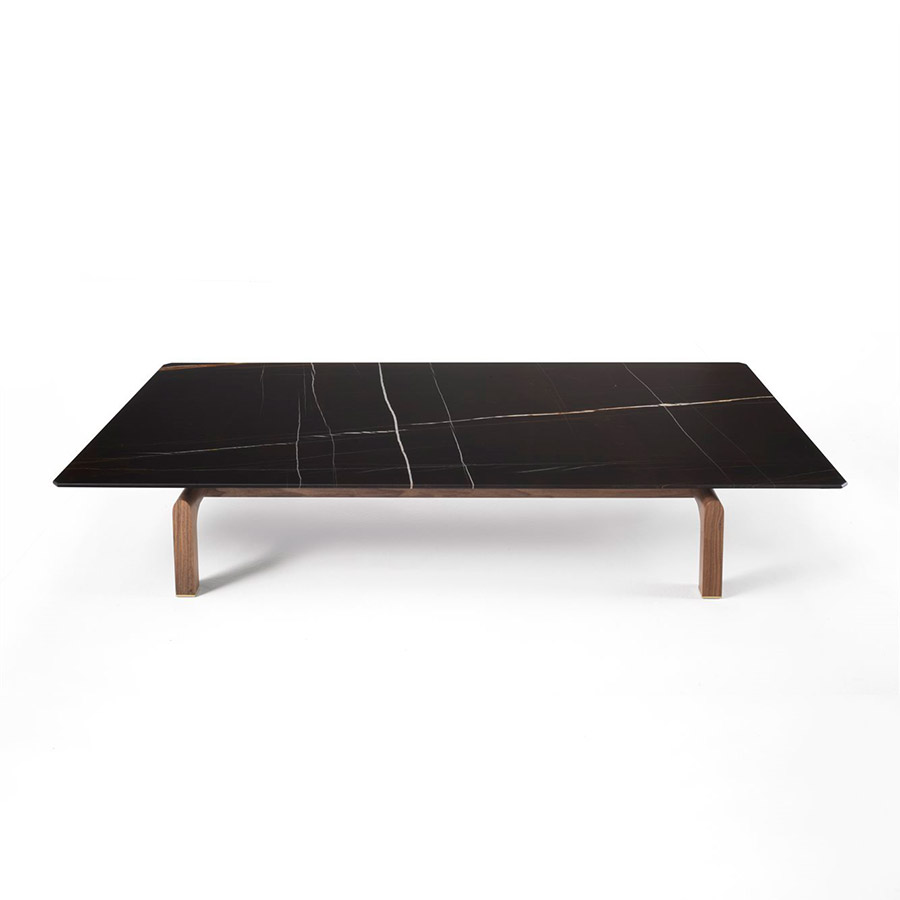 Gabriele Buratti Oscar BurattiMesa de centro rectangular con base en nogal canaletta macizo, pies en latón cepillado y tapa en mármol.