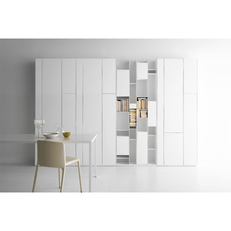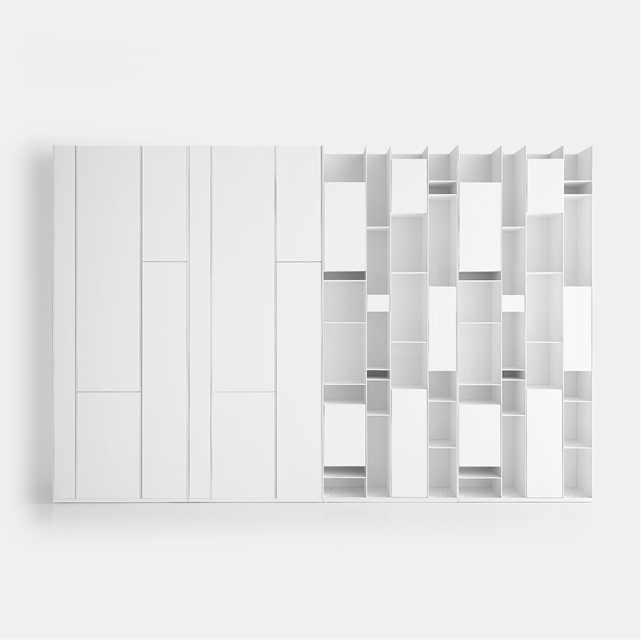 Neuland IndustriedesignUna unidad de almacenamiento con compartimentos de tamaño estándar, cerrados por puertas. Hecho de tableros de fibra de madera de densidad media, en laca blanca micro gofrada. La unidad individual siempre se puede voltear. Al flanquear más unidades, puede crear configuraciones de gran tamaño de gran impacto, también junto con Random Box y Random unit.