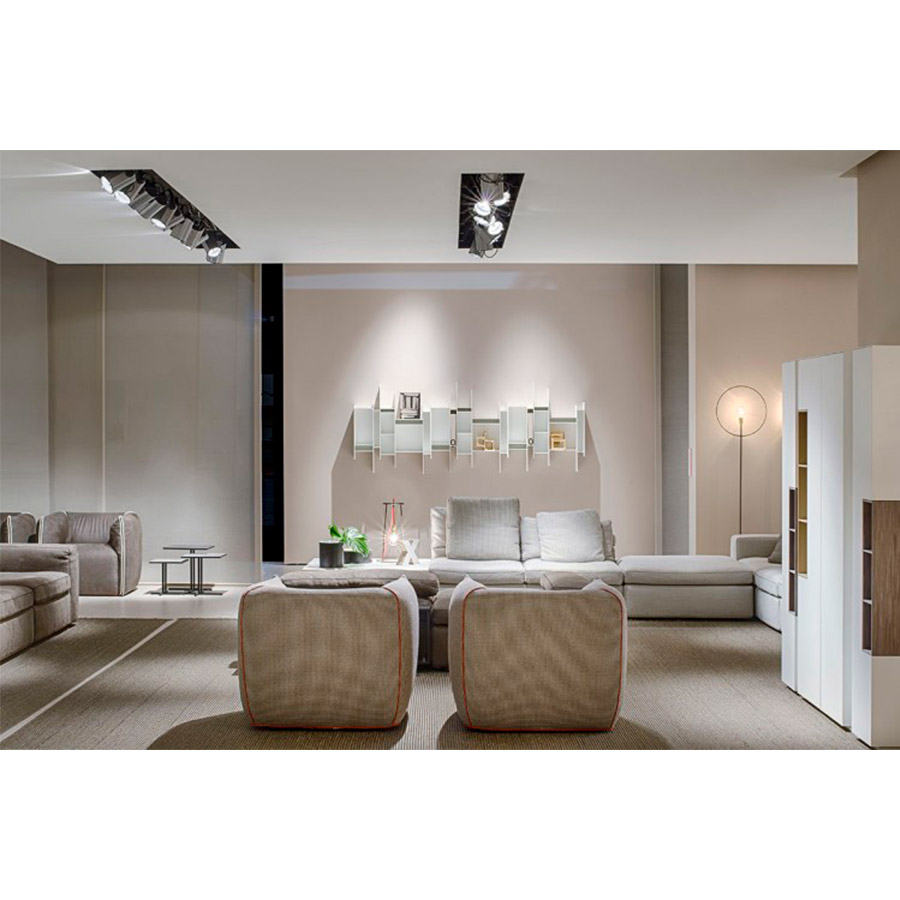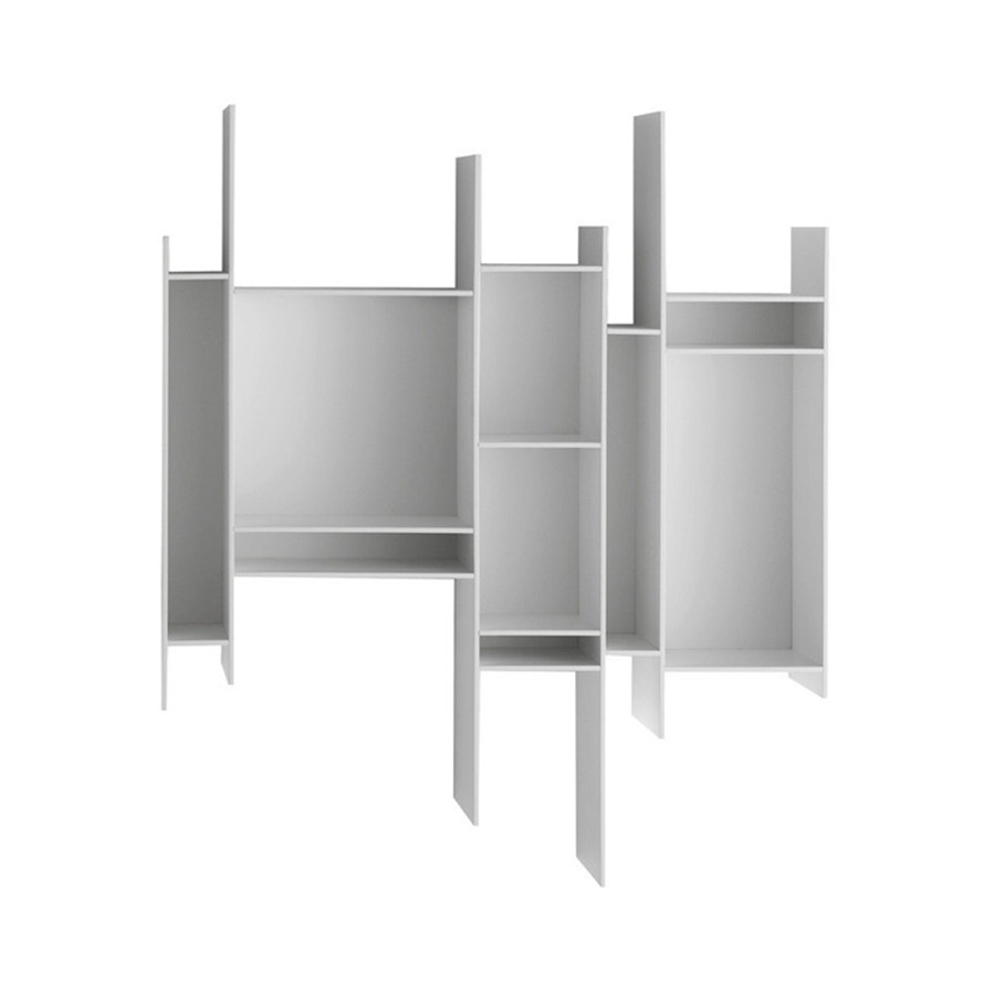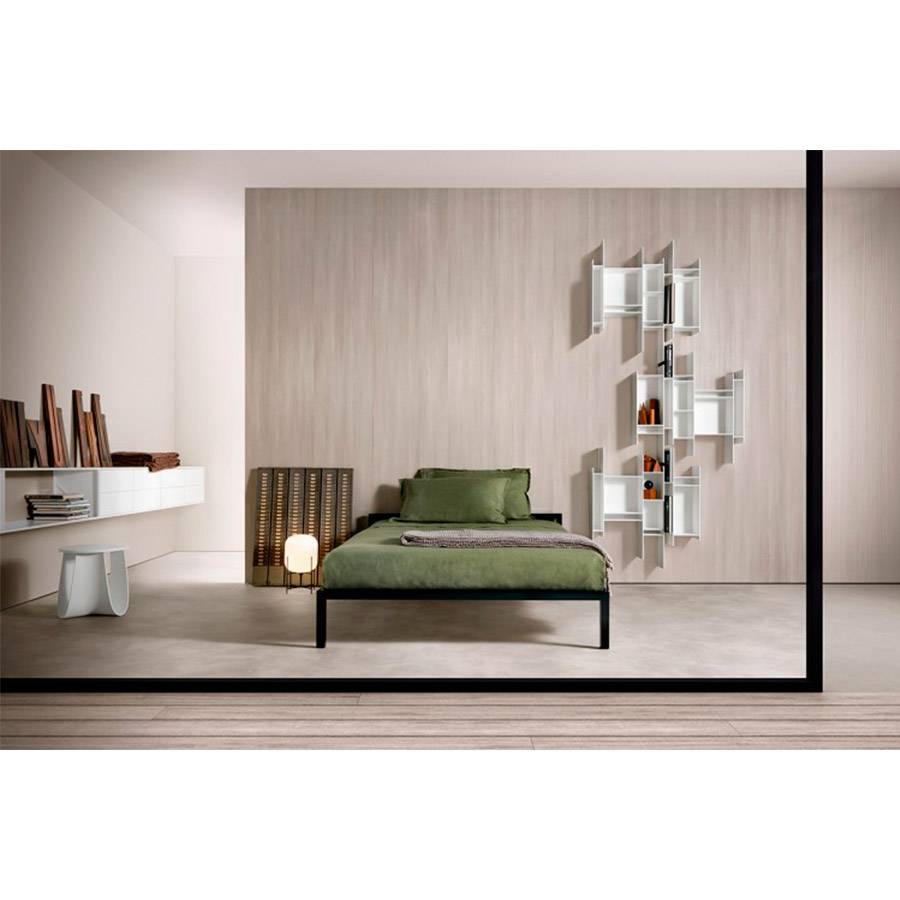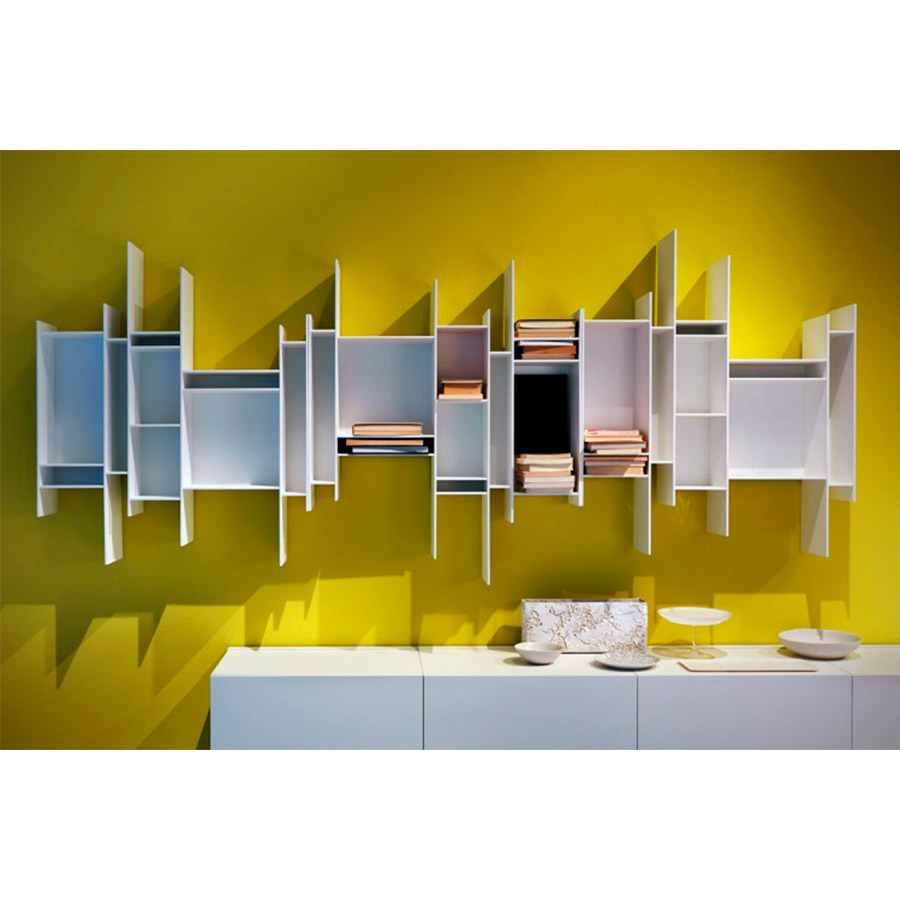 Neuland IndustriedesignUn cartel gráfico en la pared que llama la atención. Una estantería colgante pequeña pero entrañable, capaz de conferir dinamismo a cualquier entorno y embellecerla como una obra de arte. Esta es la característica principal de Randomito, cuyo módulo único y verticalmente reversible puede usarse tanto individualmente como por agregación, obteniendo así muchas configuraciones personalizadas. Además, la paleta de colores se ha agregado más tonos a lo largo de los años: no solo blanco puro sino otros siete tonos, incluidos los pasteles. Neuland Industriedesign concibió una estantería que evoca movimiento y ligereza, cuya silueta es inconfundible: única en su tipo, está inspirada en el «progenitor» Aleatorio, que representa uno de sus caminos evolutivos. Maravilloso en contextos residenciales, Randomito se presta excelentemente a espacios comerciales.