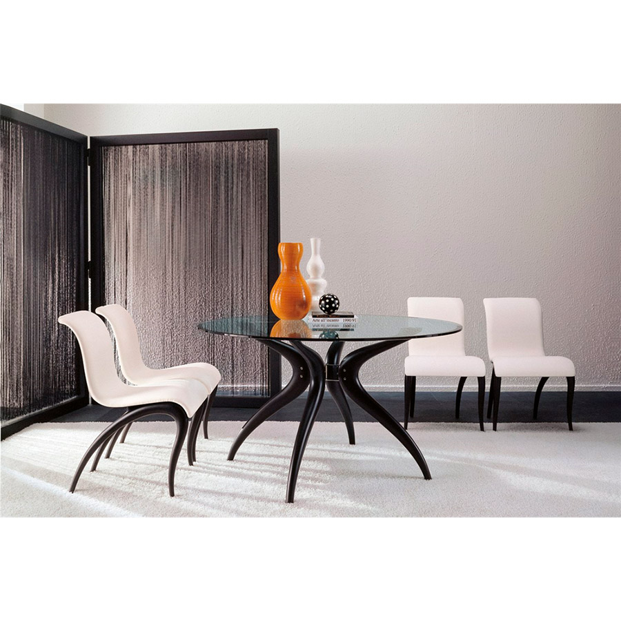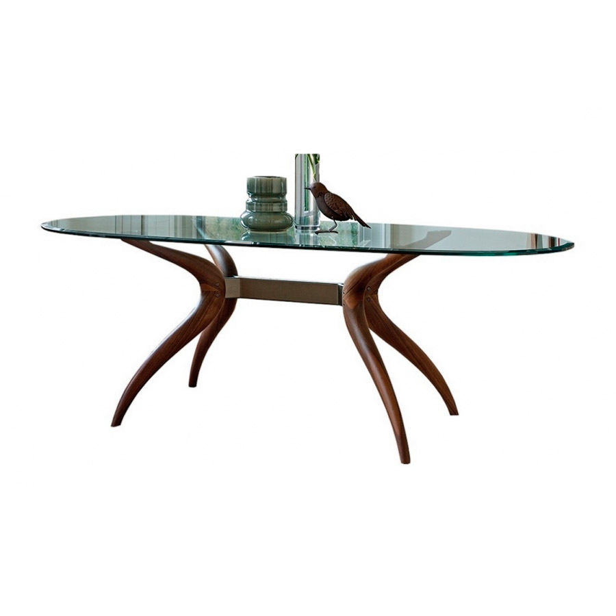 M. Marconato T. ZappaMesa de comedor con base de nogal canaletta macizo. Inserción en metal y tapa de cristal biselado (espesor mm. 15).