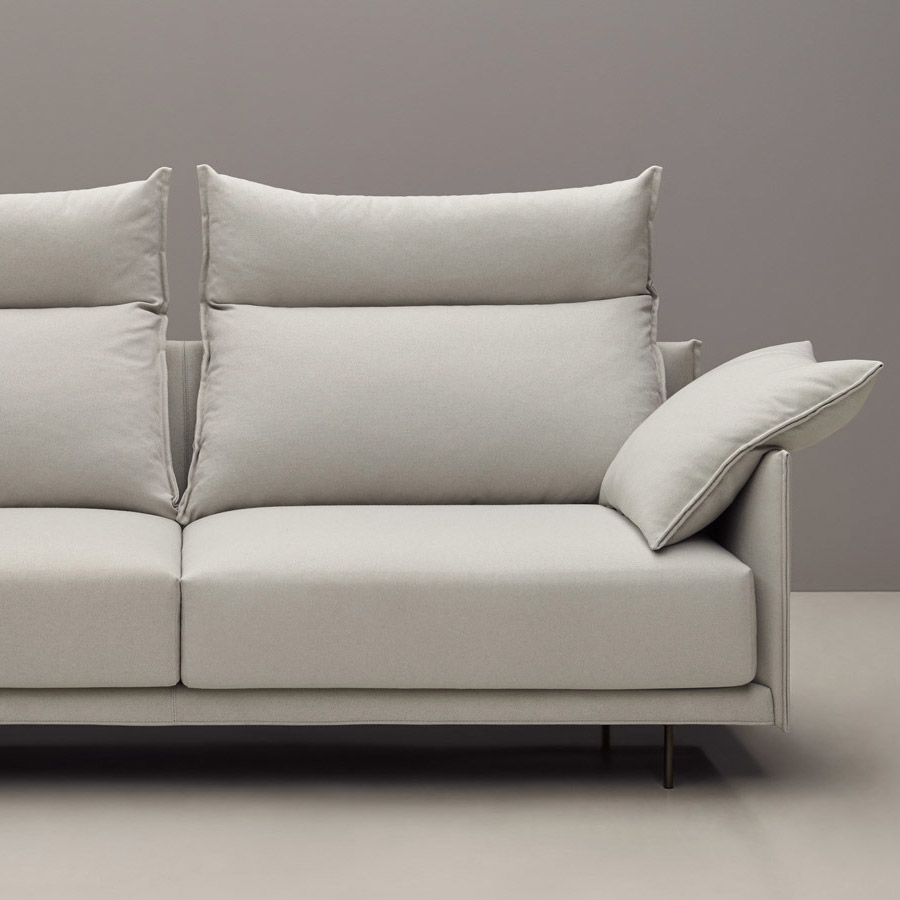 Mario RuizDe espíritu flexible y versátil, el sofa Senso permite crear combinaciones personalizadas. Incorpora elementos como mesitas en forma de repisa tapizadas, integradas en la estructura, asientos o módulos sin respaldo, así como dos alturas diferentes de brazo y de respaldo, que pueden combinarse en un mismo sofá. Los cojines de asiento están compuestos por una mezcla de espuma y fibra.