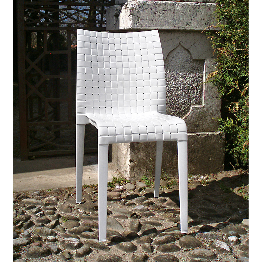Tokujin YoshiokaInspirada en el juego entre la urdimbre y la trama en tela, la silla Ami Ami cuyo nombre en japonés significa literalmente «tejer» nació del deseo del diseñador, Tokujin Yoshioka, de reproducir uno de los iconos estilísticos típicos de su país. – Costura. Las líneas cuadradas simples contrastan con la riqueza del tejido y esto se logra en las superficies internas y externas a través de un complejo proceso industrial que recrea el motivo usando un solo molde. Ami Ami reúne el atractivo de la cultura oriental y el uso de materiales innovadores como el policarbonato y está disponible en dos versiones transparentes: cristal y humo, y en tres versiones mate: rojo, blanco y negro.