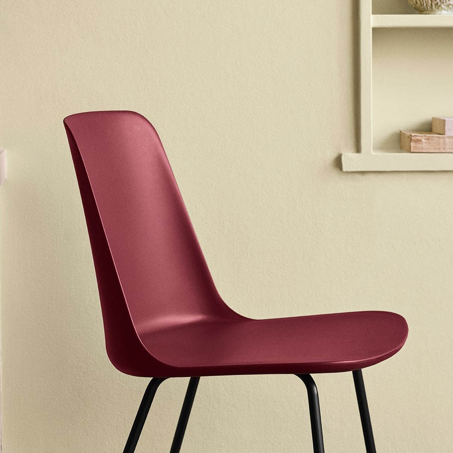 Hee WellingLa silla Rely es una elegante muestra de diseño vanguardista y respetuoso con el medio ambiente. Puede realizarse con una estructura elaborada con plástico 100% reciclado, con un asiento tapizado en tela a juego o en contraste, o completamente tapizada. La estructura puede ser metálica, con ruedas, o en madera.