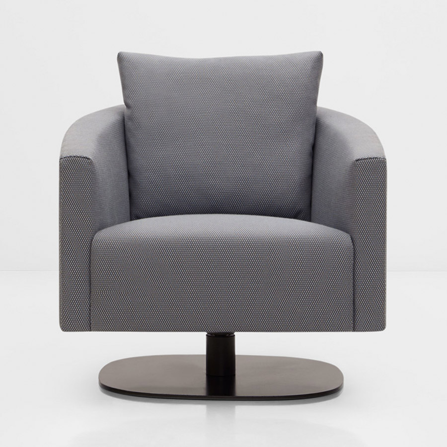 Dario GagliardiniBouvier es una cómoda butaca con cuerpo en U que abraza el asiento y conforma el respaldo, sobre una pata metálica giratoria o fija. Tapicería fija. Cojín de respaldo desenfundable. Bastidor de madera recubierto de espuma y fibra. Suspensión mediante lamas de plástico reforzadas con fibra de vidrio.