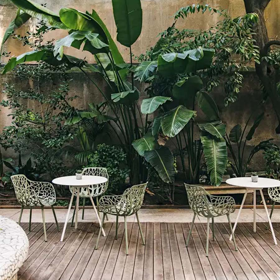Robby Cantarutti & PartnersFabricada en aluminio inyectado, Forest se caracteriza por un diseño icónico y elegante. Disponibles en múltiples colores, los asientos de la colección Forest fusionan la naturaleza con la tecnología y encaja perfectamente tanto en interiores como en exteriores.