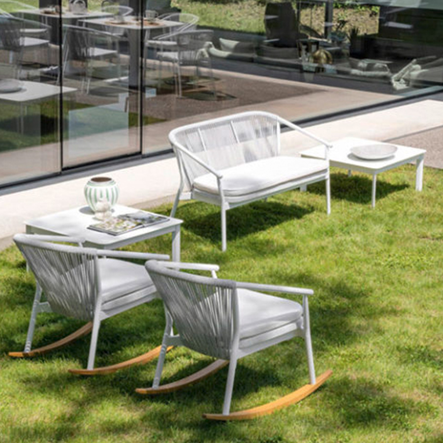 SMART es un sillón mecedora de diseño, ideal para decorar jardines, terrazas o terrazas al aire libre. Es la elección correcta para aquellos que desean relajarse o cenar al aire libre de una manera original. Utilizado en combinación con mesas bajas, que tienen una altura más baja (65 cm) que las mesas estándar, el sillón mecedora inteligente para exteriores es la solución perfecta para aquellos que buscan un asiento cómodo y funcional.