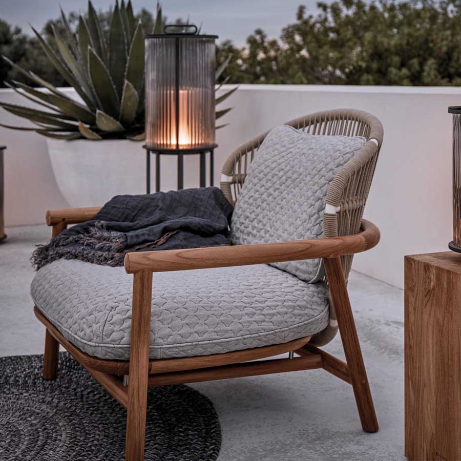 Sebastian HerknerInspirada en los delicados frondes de una hoja de helecho que se desenrolla, la colección Fern de Sebastian Herkner tiene un lenguaje de diseño que evoca la naturaleza. Combinando teca de plantación con una cuerda exterior de acabado suave, el respaldo envolvente y tejido protege y proporciona comodidad, y está unido a un marco de teca de estilo típicamente escandinavo, que refleja sus contornos y subraya los aspectos de confort.