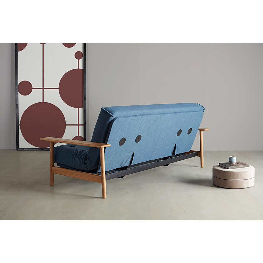 Per WeissEl sofa cama Balder tiene un diseño único de estilo escandinavo. Cuenta con dos posiciones de sofá reclinables y un reposabrazos de roble macizo. Se convierte en una cama de 140 x 200 con elevación de cabeza de 4 pasos.