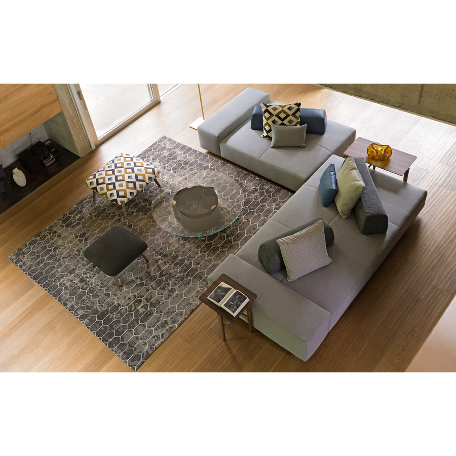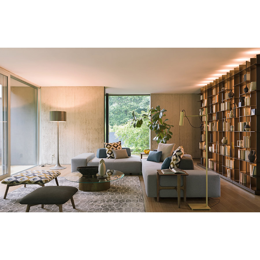 Sofá componible que introduce un concepto de uso dinámico y multifuncional, ideal para acoger nuevos estilos de vida. Se compone de elementos base (4 asientos, 1 brazo, 6 respaldos) que, combinados libremente, ofrecen múltiples posiciones de asiento e infinitas personalizaciones. Los respaldos móviles, no anclados pero que llevan un peso en la parte inferior para asegurar un apoyo firme, se pueden disponer como se prefiera y permiten acoger, con la máxima comodidad, personas de estaturas diferentes.